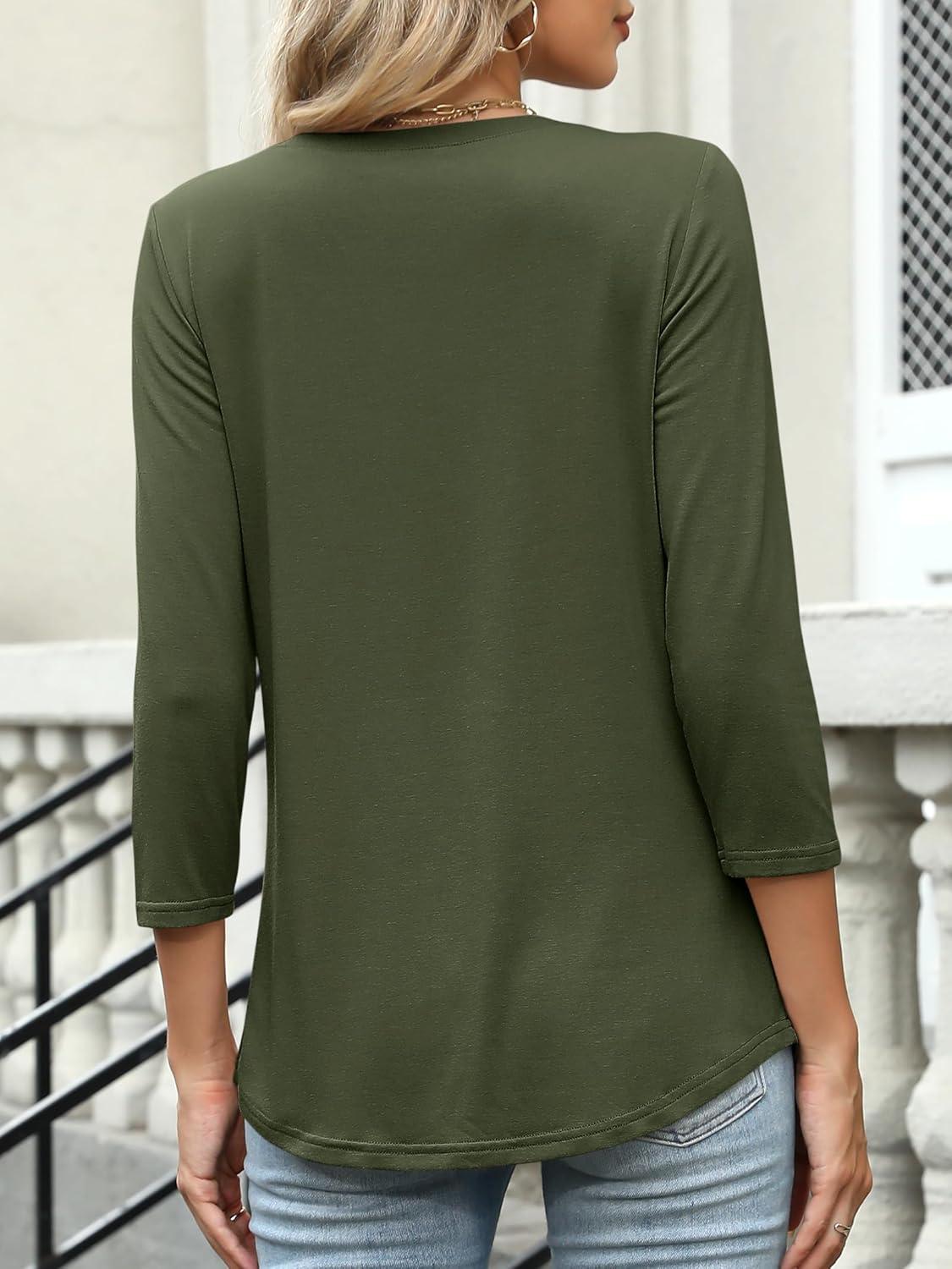 ANRABESS Womens 3/4 Length Sleeve Top V Neck Summer T-Shirts Basic Tee 2026 Fall Casual Loose Fit Tunic Shirts Work Blouse(Army Green)