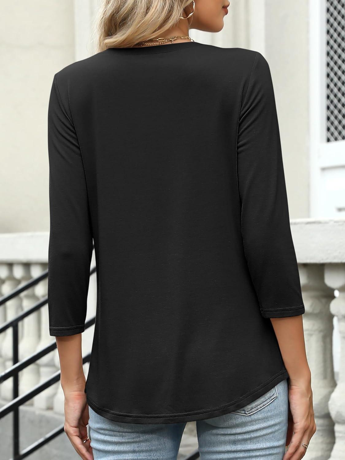 ANRABESS Womens 3/4 Length Sleeve Top V Neck Summer T-Shirts Basic Tee 2026 Fall Casual Loose Fit Tunic Shirts Work Blouse(Black)