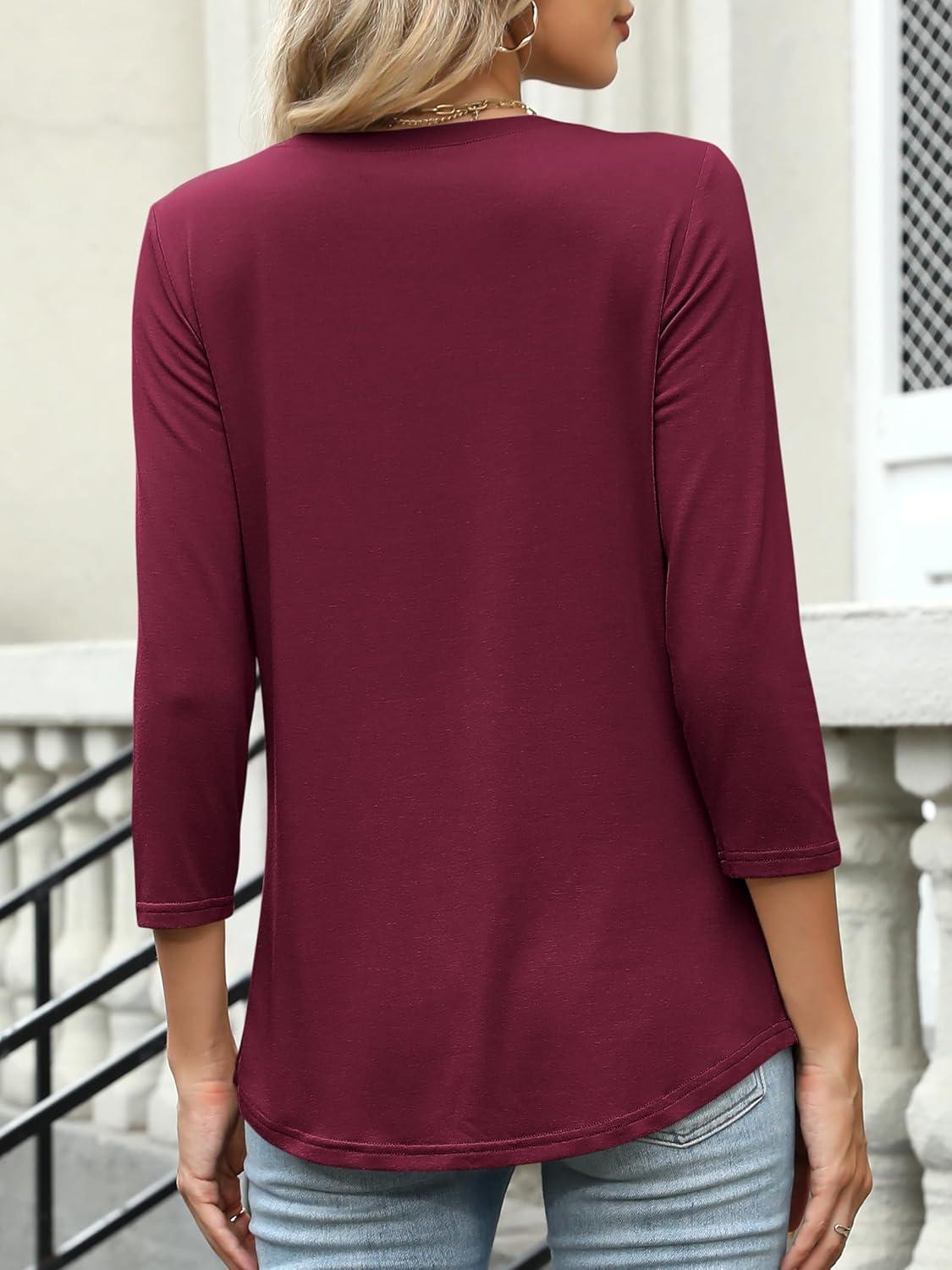 ANRABESS Womens 3/4 Length Sleeve Top V Neck Summer T-Shirts Basic Tee 2026 Fall Casual Loose Fit Tunic Shirts Work Blouse(Burgundy)