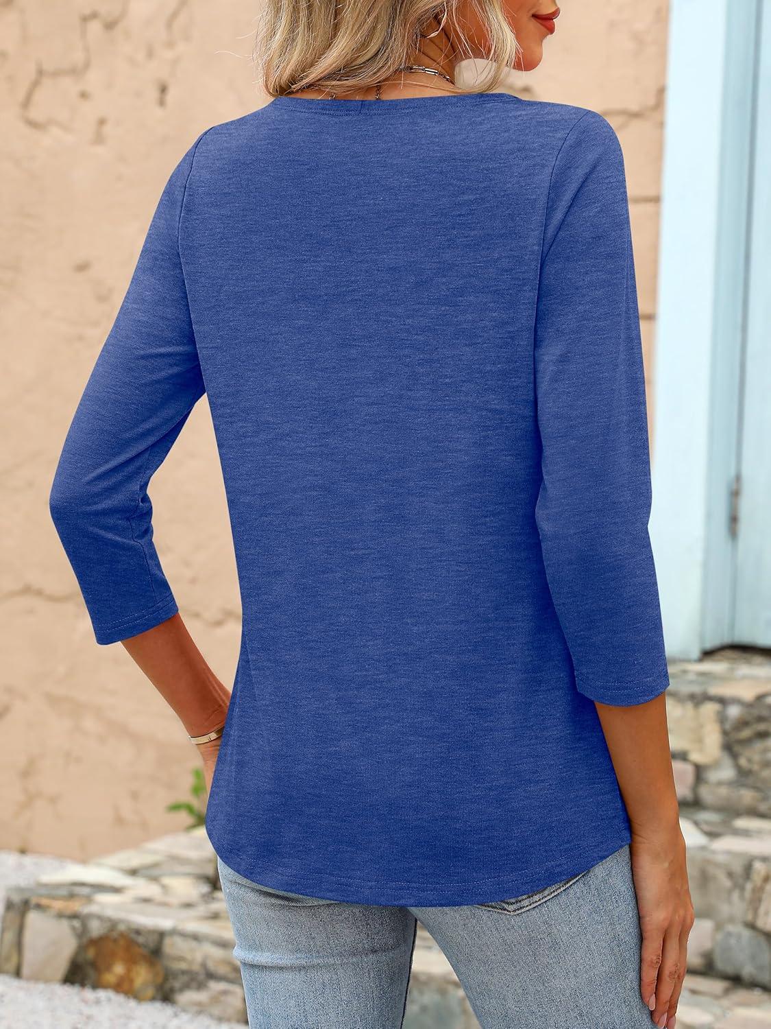 ANRABESS Womens 3/4 Length Sleeve Tops 2025 Summer Tee T-Shirts Boat Neck Tunic Travel Basic Blouses Fall Fashion Clothes(Blue)