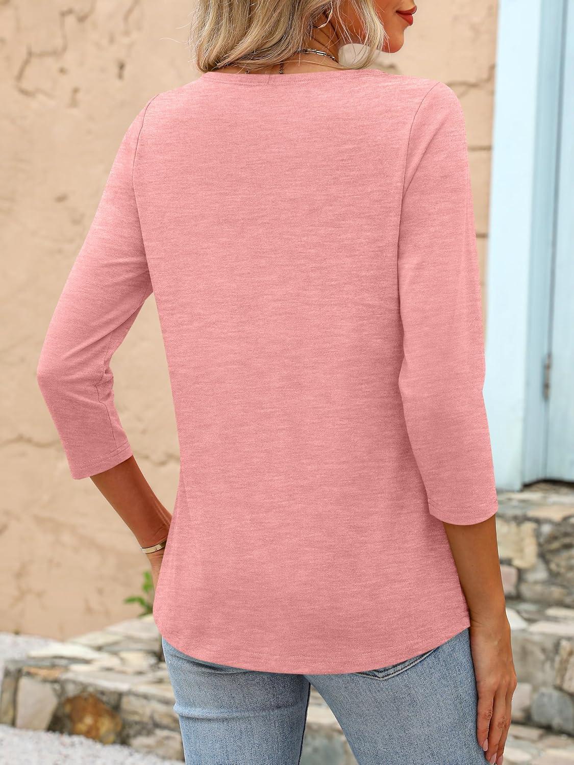 ANRABESS Womens 3/4 Length Sleeve Tops 2025 Summer Tee T-Shirts Boat Neck Tunic Travel Basic Blouses Fall Fashion Clothes(Coral)