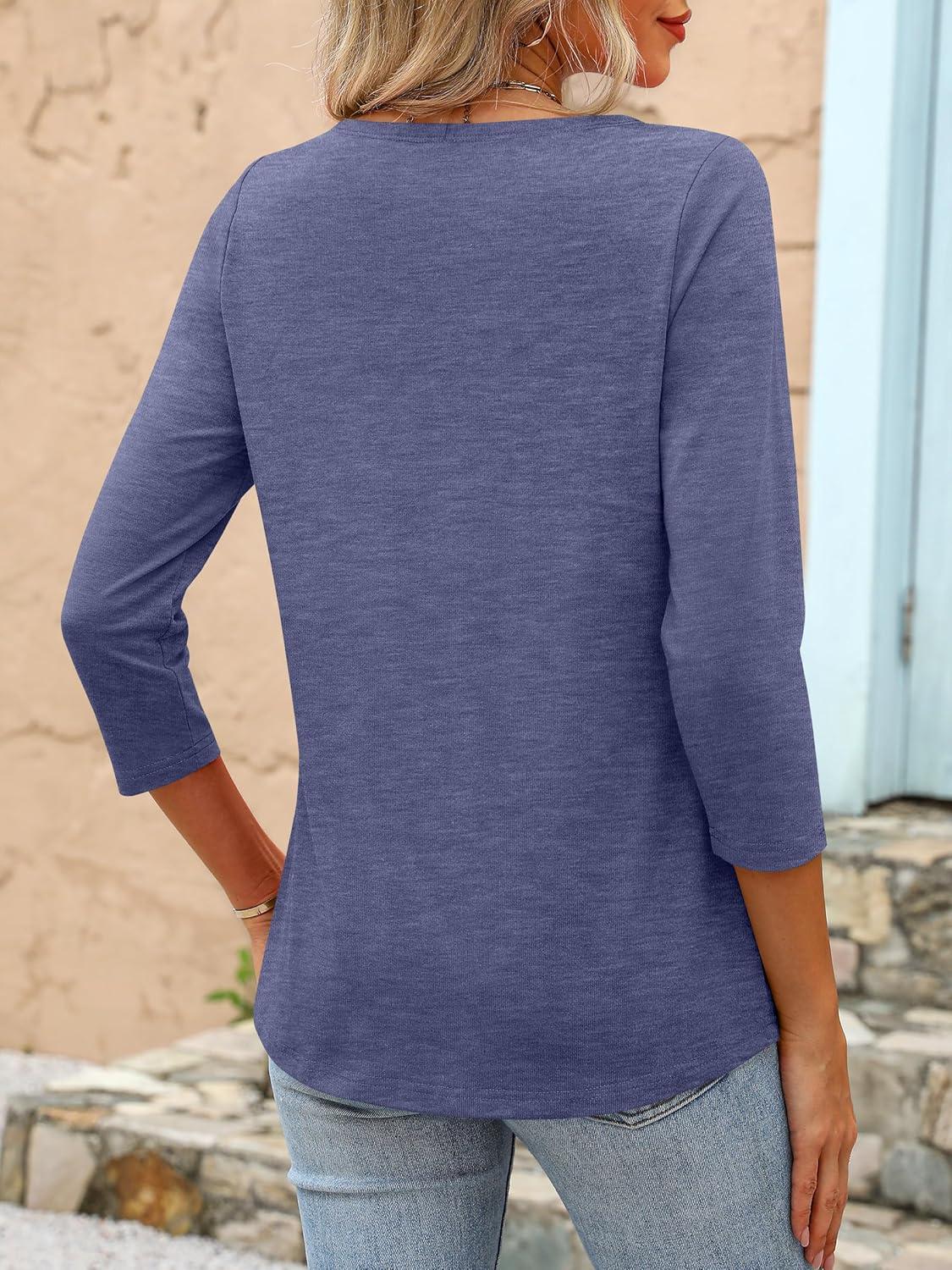 ANRABESS Womens 3/4 Length Sleeve Tops 2025 Summer Tee T-Shirts Boat Neck Tunic Travel Basic Blouses Fall Fashion Clothes(Navy Blue)