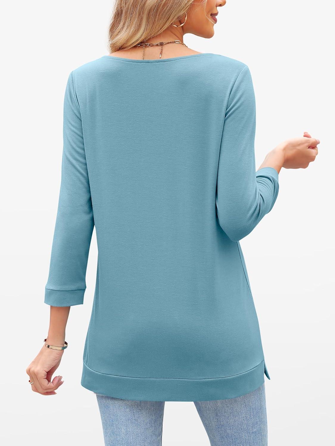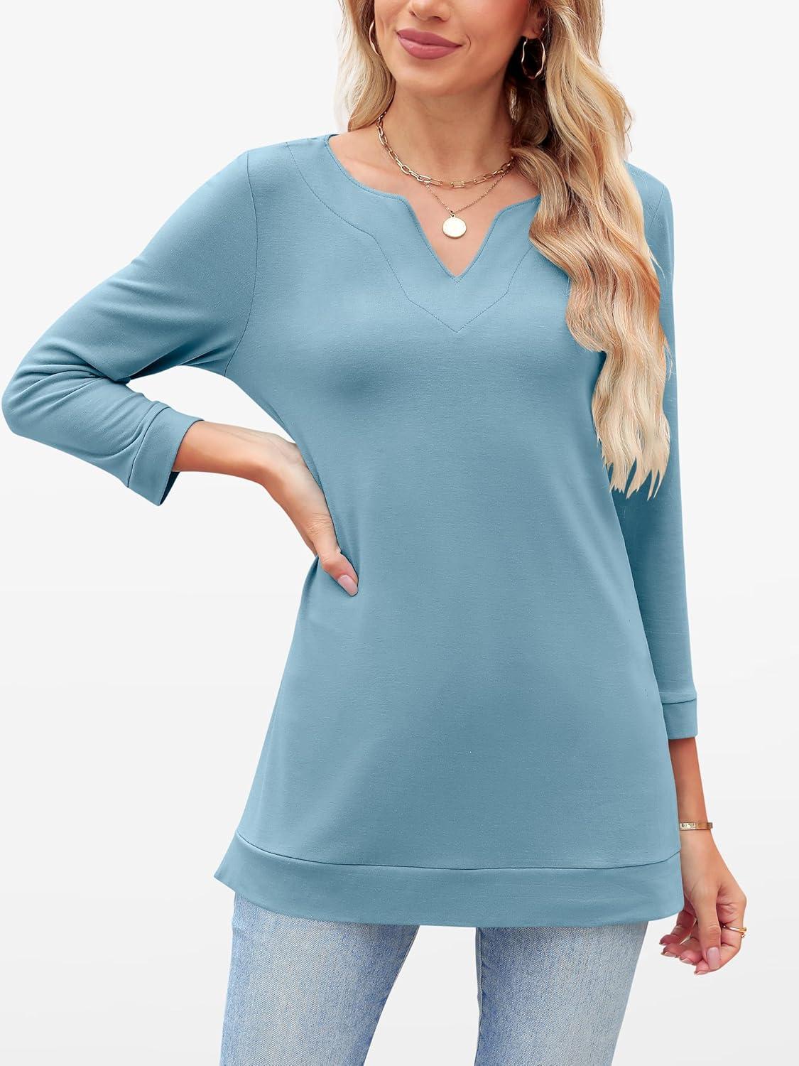 ANRABESS Womens 3/4 Length Sleeve Tops V Neck Basic Tee Shirts 2025 Spring Summer Dressy Casual Tunic Blouses Outfits(Lake Blue)