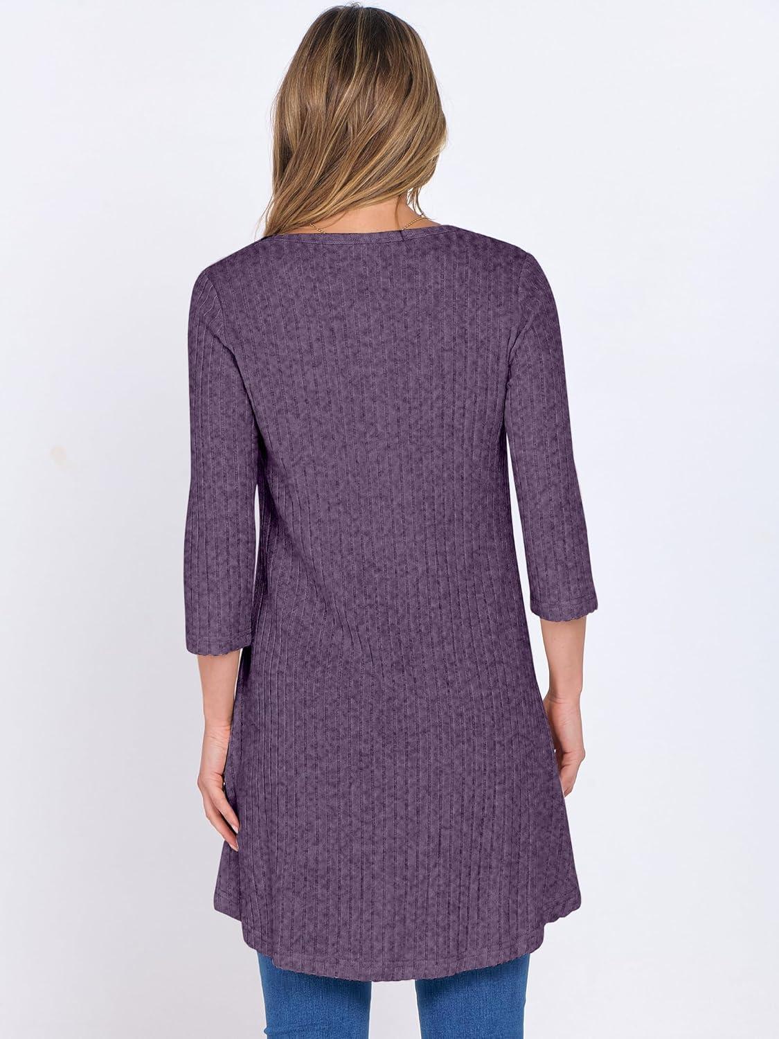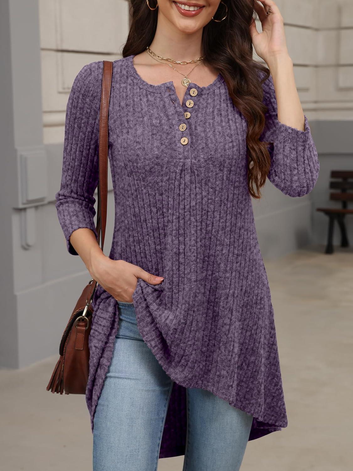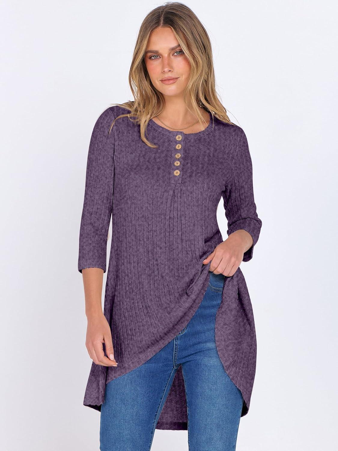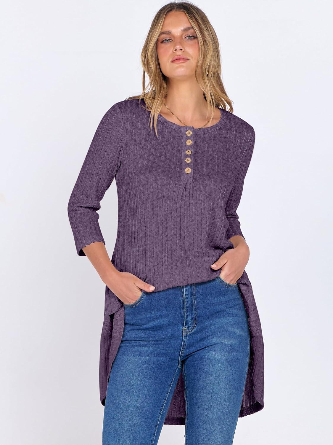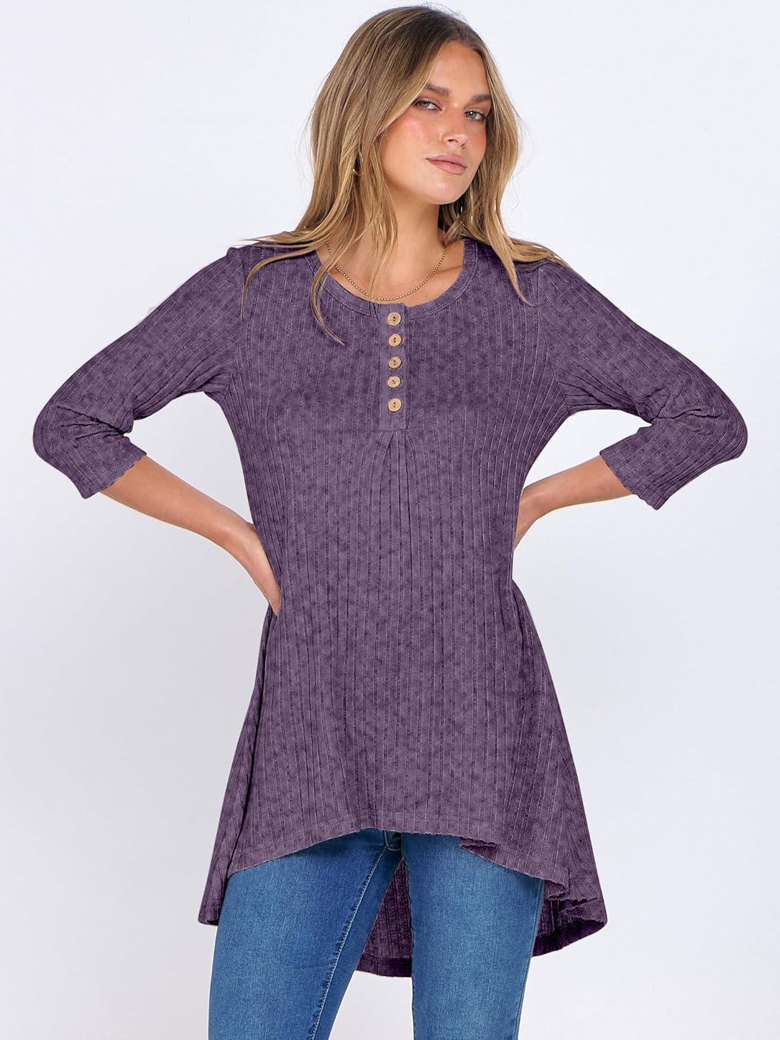 ANRABESS Women’s 3/4 Sleeve Long Tunic Tops for Leggings High Low Henley Shirts Dressy Casual Loose Blouses 2025 Fall Fashion(Purple)