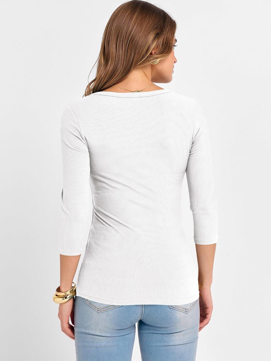 imageANRABESS Womens 34 Sleeve Scoop Neck Tops Ribbed Knit Slim Fitted Casual Basic Tee Shirts 2025 Fall Trendy Going Out TShirtWhite