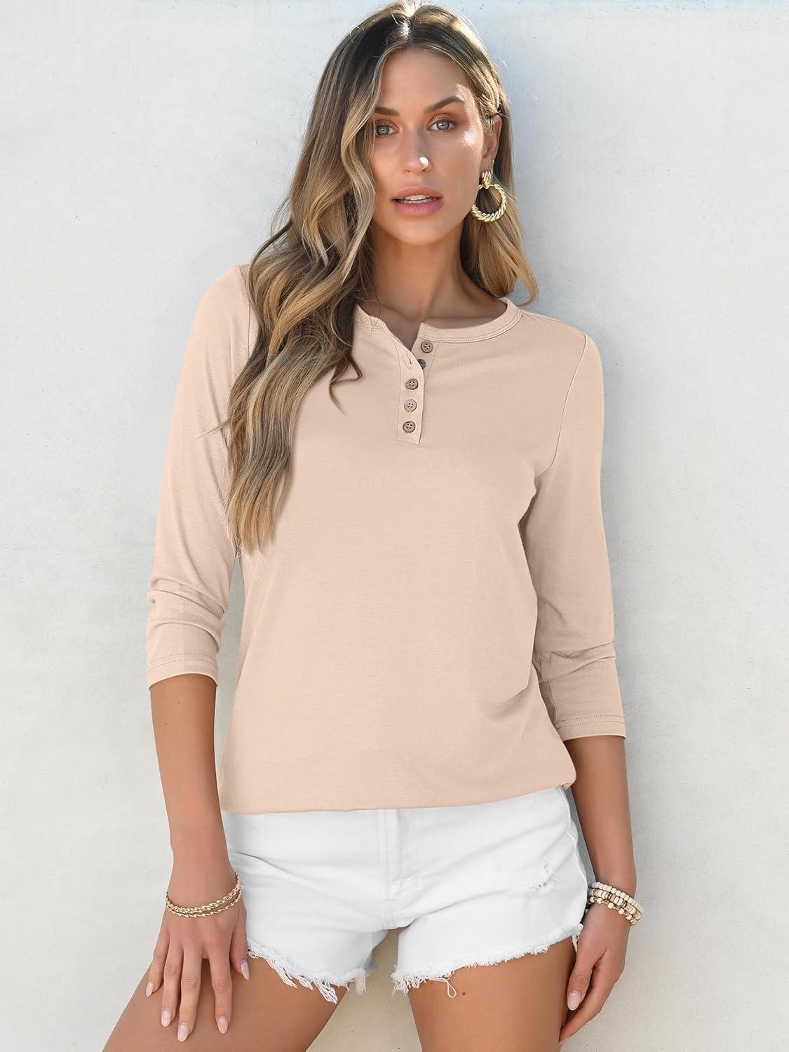 imageANRABESS Womens 34 Sleeve Tops Henley Shirts Casual Trendy Button T Shirts 2025 Summer Basic TunicApricot