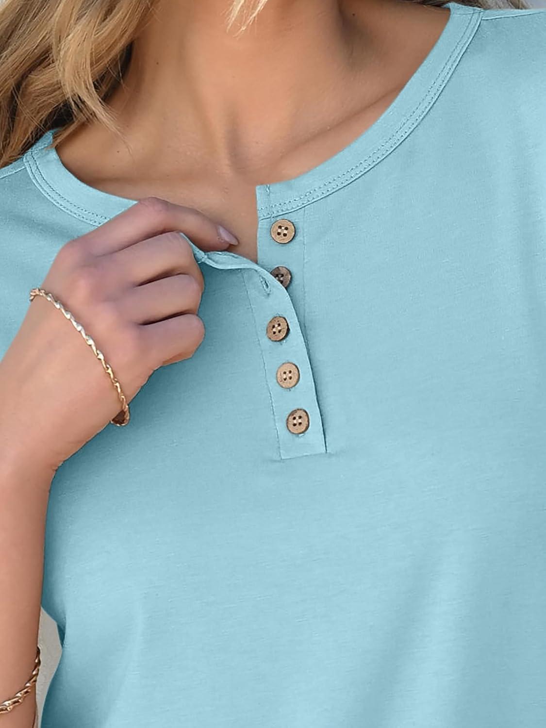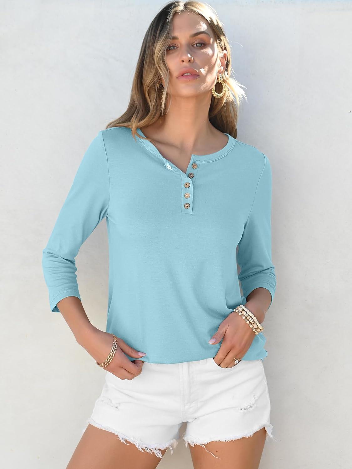 ANRABESS Womens 3/4 Sleeve Tops Henley Shirts Casual Trendy Button T Shirts 2026 Summer Basic Tunic(Lake Blue)