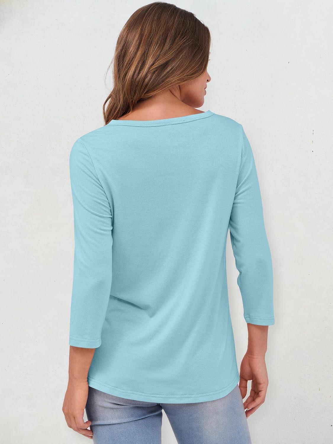 ANRABESS Womens 3/4 Sleeve Tops Henley Shirts Casual Trendy Button T Shirts 2026 Summer Basic Tunic(Light Blue)