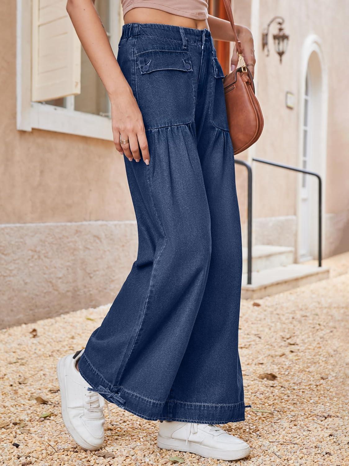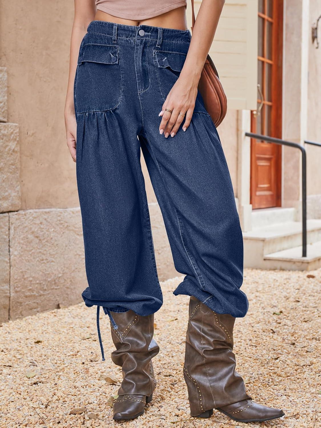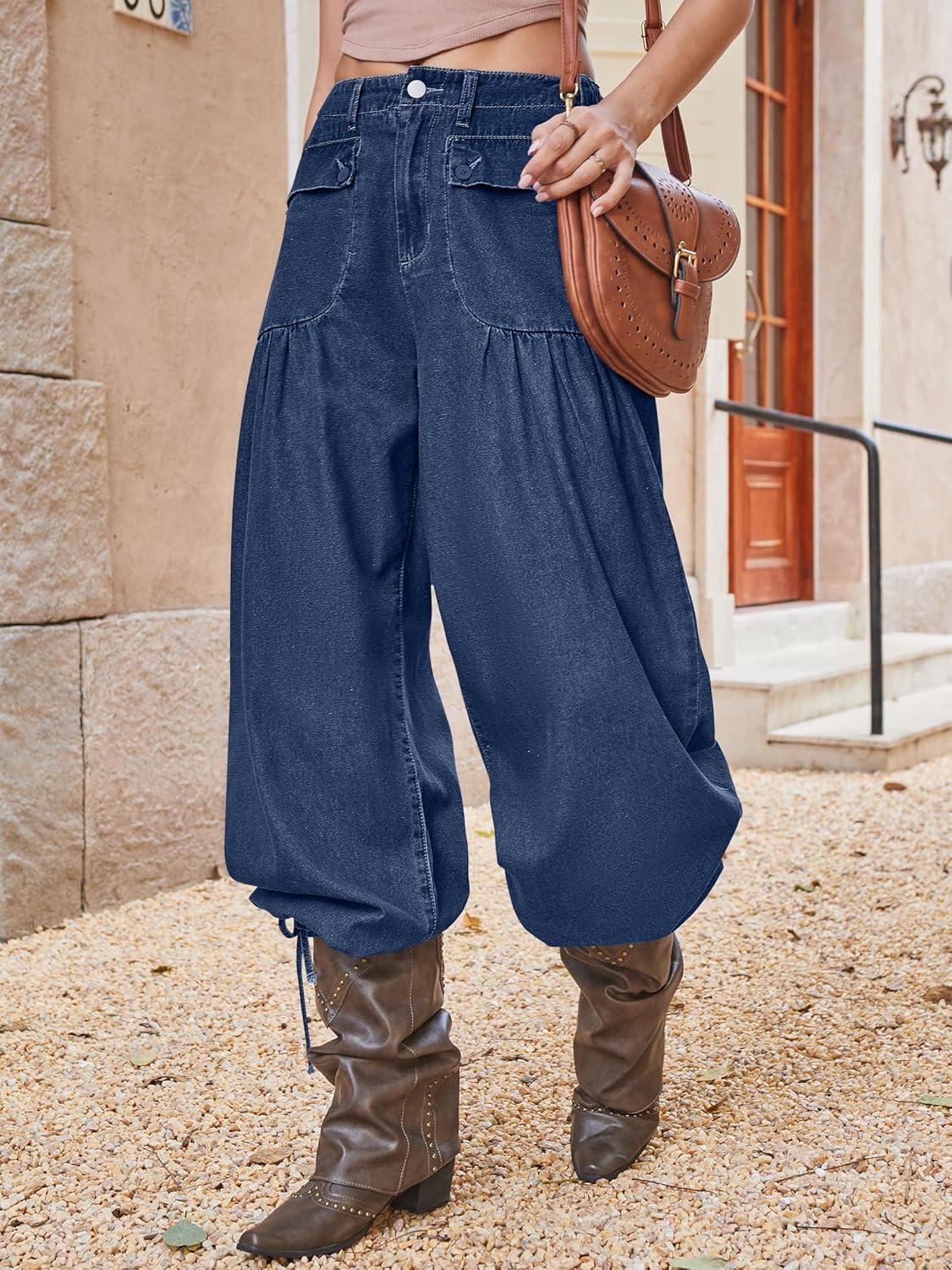 ANRABESS Women’s Baggy Jeans 2025 Fashion Mid Rise Tie Ankle Wide Leg Harem Palazzo Denim Pants with Pockets(Blue)