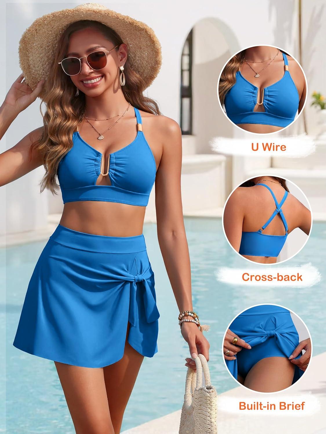 ANRABESS Womens Bikini Sets Two Piece Swim Skirt High Waisted Swimsuits Tummy Control U-Wire Bathing Suit 2026 Beach Swimwear(Blue)