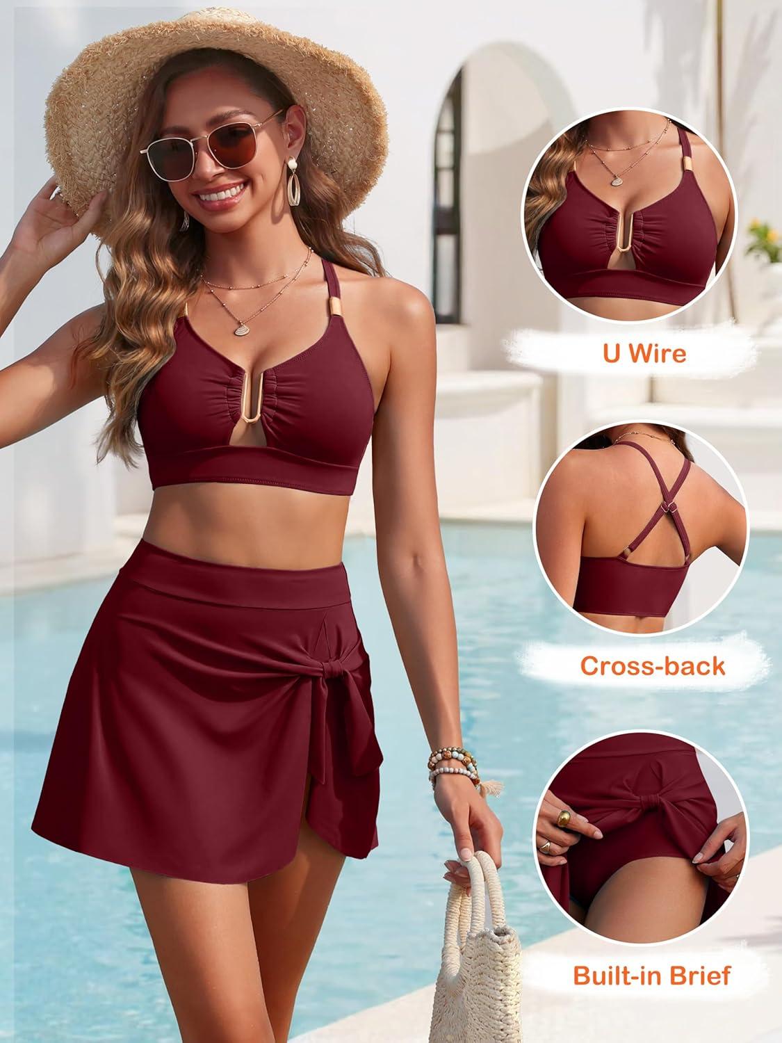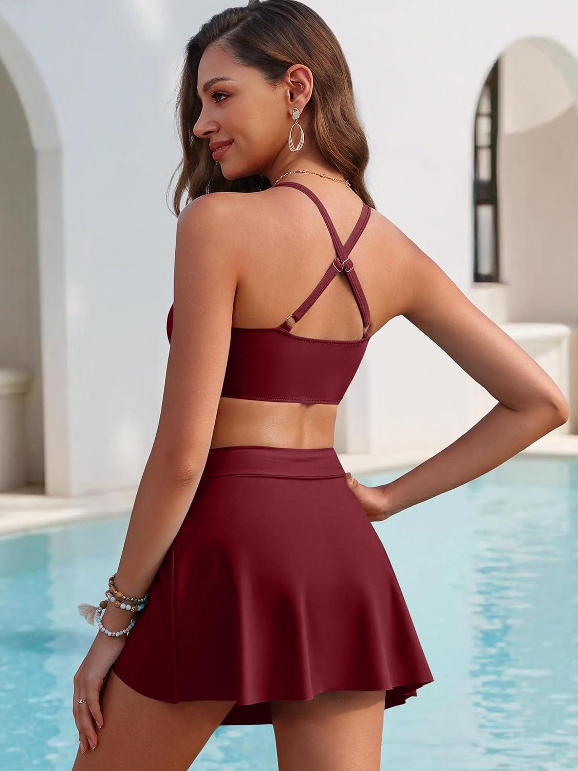 ANRABESS Womens Bikini Sets Two Piece Swim Skirt High Waisted Swimsuits Tummy Control U-Wire Bathing Suit 2026 Beach Swimwear(Wine Red)
