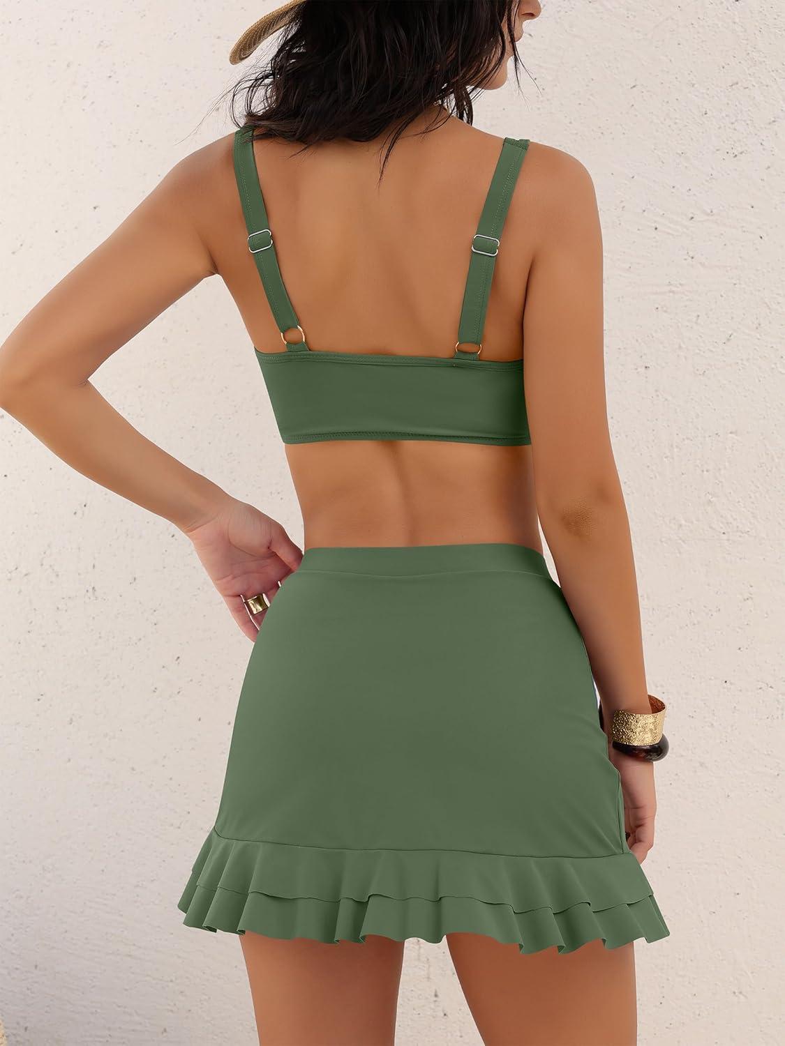 ANRABESS Womens Bikini Skirt Sets High Waisted Two Piece Swimsuits 2026 Summer Tummy Control Mesh Swim Bathing Suits(Army Green)