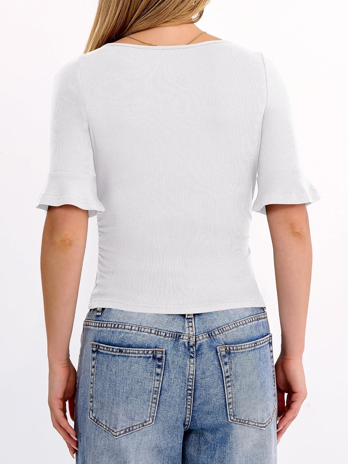 ANRABESS Womens Boat Neck Bell Short Sleeve Shirts Ruched Crop Dressy Work Blouse Business Casual Top 2026 Spring Clothing(White)