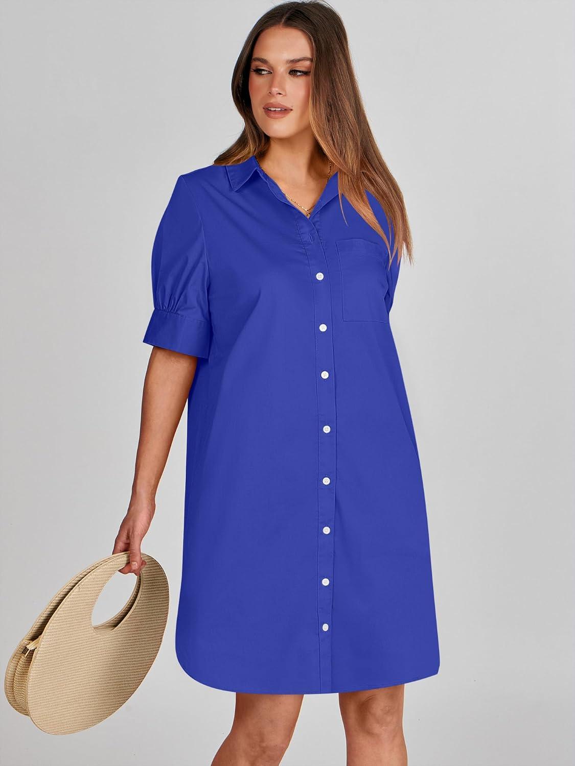 ANRABESS Womens Button Down Shirt Dress Summer Short Sleeve Business Casual Shift Dresses with Pockets 2026 Trendy(Royal Blue)