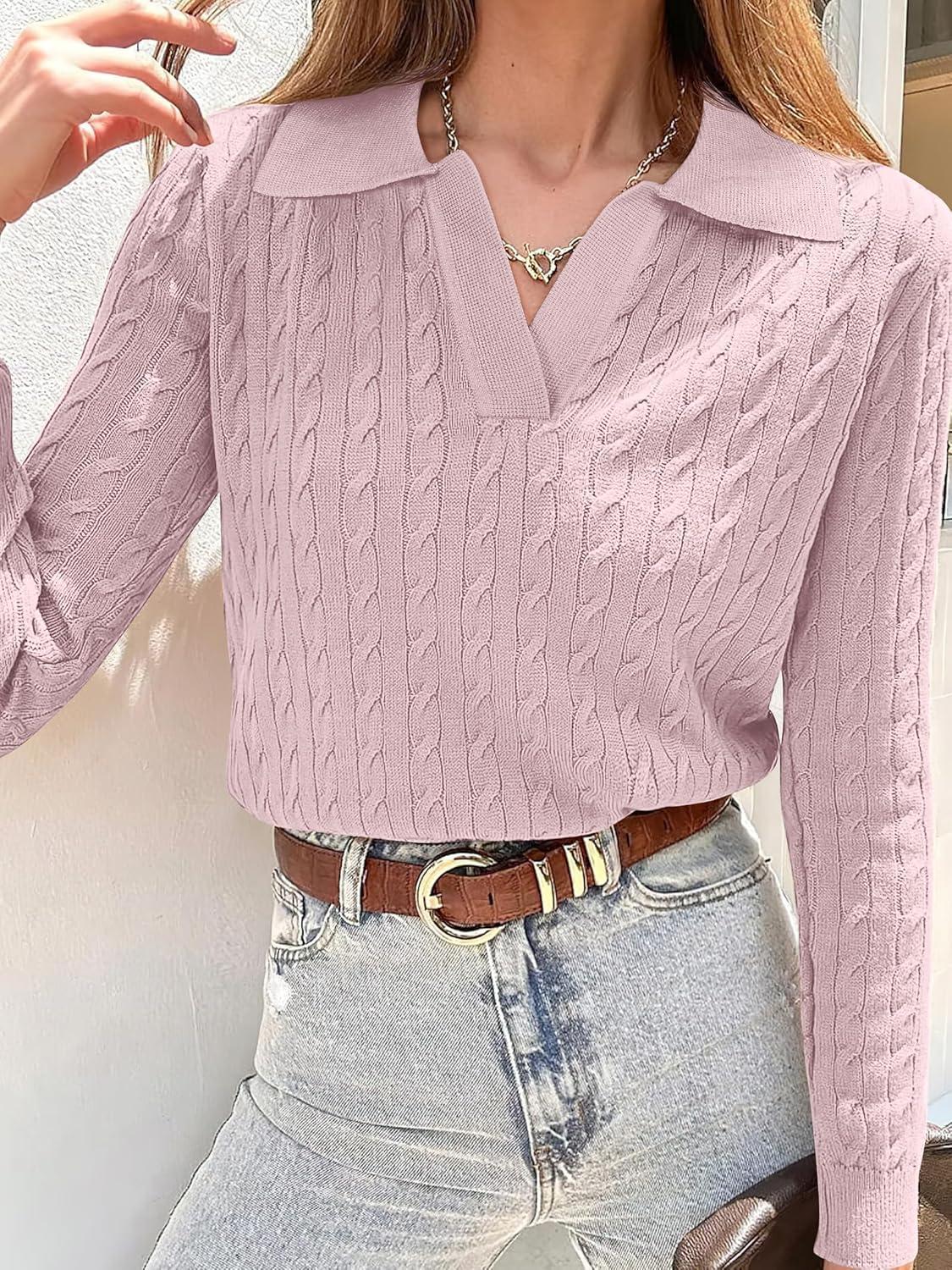 imageANRABESS Womens Cable Knit Sweaters Long Sleeve V Neck Sweater Tops Casual Pullover Polo Shirts 2025 Fall Fashion OutfitsPink