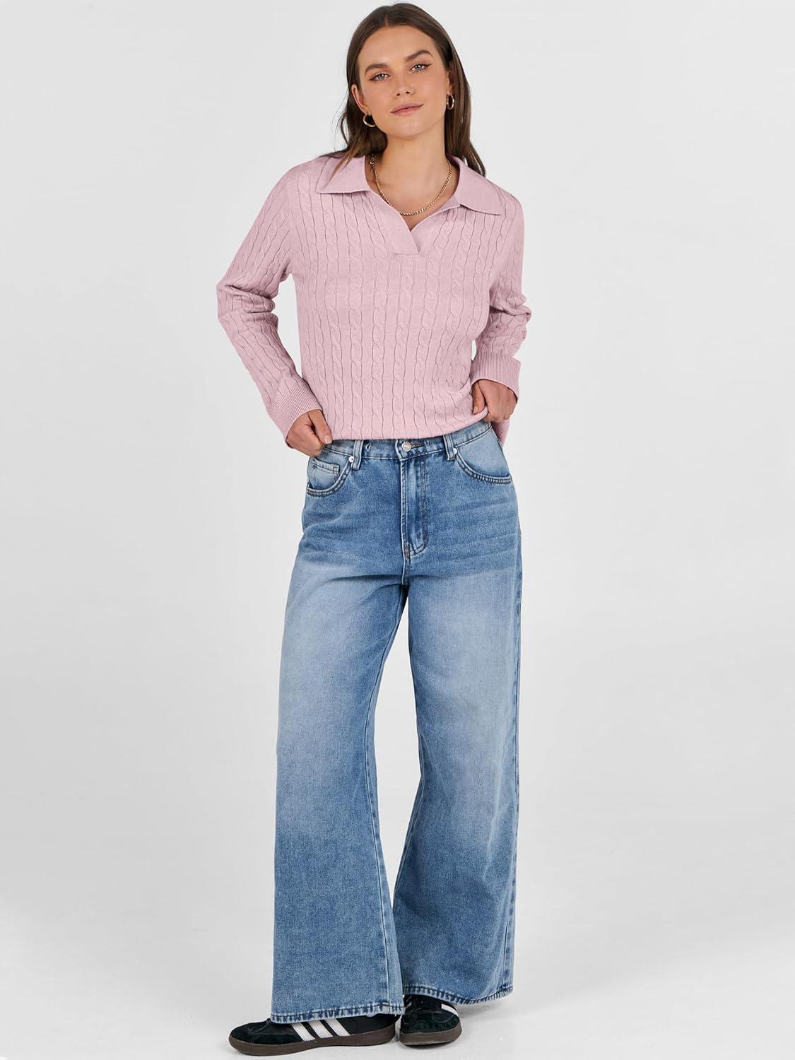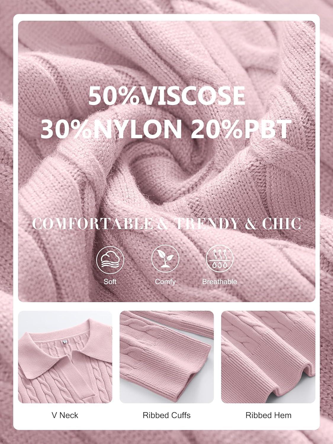 Be the first to review “ANRABESS Womens Cable Knit Sweaters Long Sleeve V Neck Sweater Tops Casual Pullover Polo Shirts 2025 Fall Fashion Outfits(Pink)”