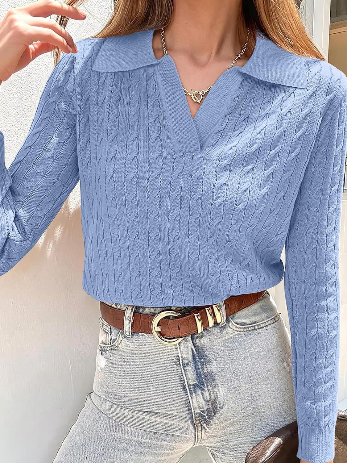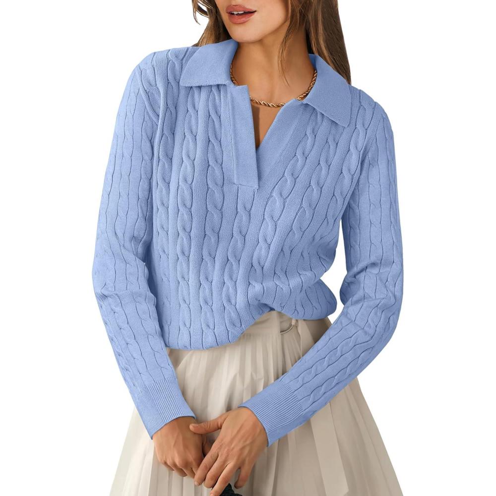 imageANRABESS Womens Cable Knit Sweaters Long Sleeve V Neck Sweater Tops Casual Pullover Polo Shirts 2025 Fall Fashion OutfitsSky