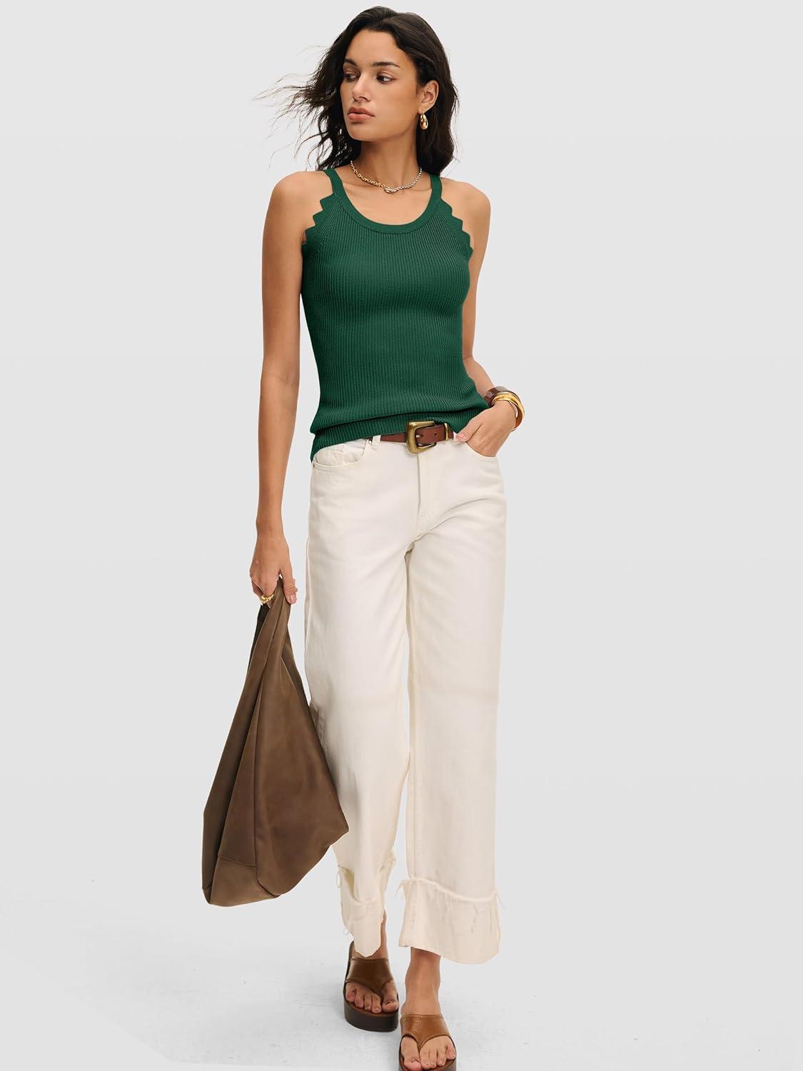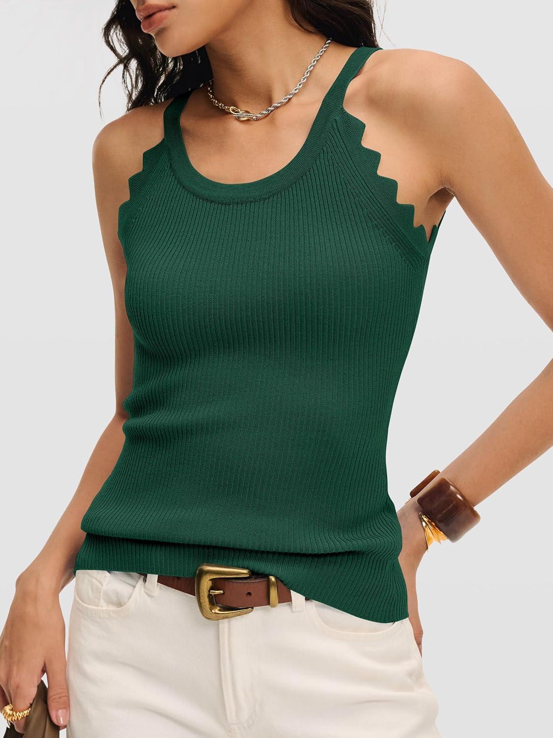 ANRABESS Womens Camisole Tank Tops Sleeveless Cami Sweater Spaghetti Strap Ribbed Shirts 2026 Summer Beach Vacation Clothes(Deep Green)