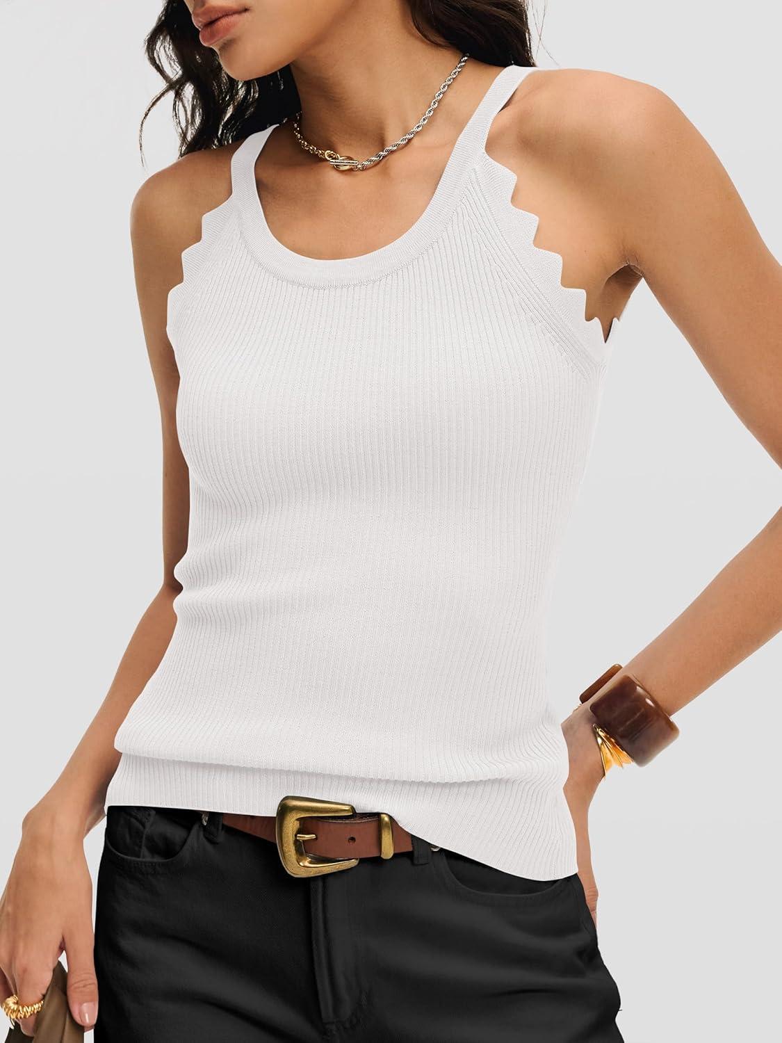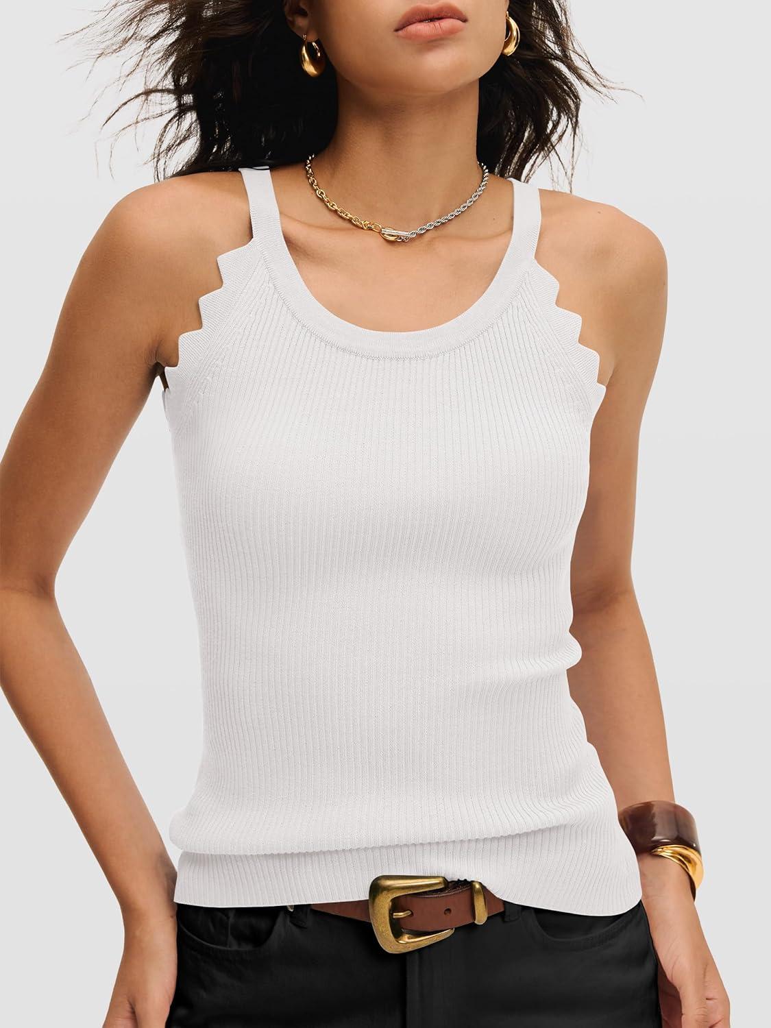ANRABESS Womens Camisole Tank Tops Sleeveless Cami Sweater Spaghetti Strap Ribbed Shirts 2026 Summer Beach Vacation Clothes(White)