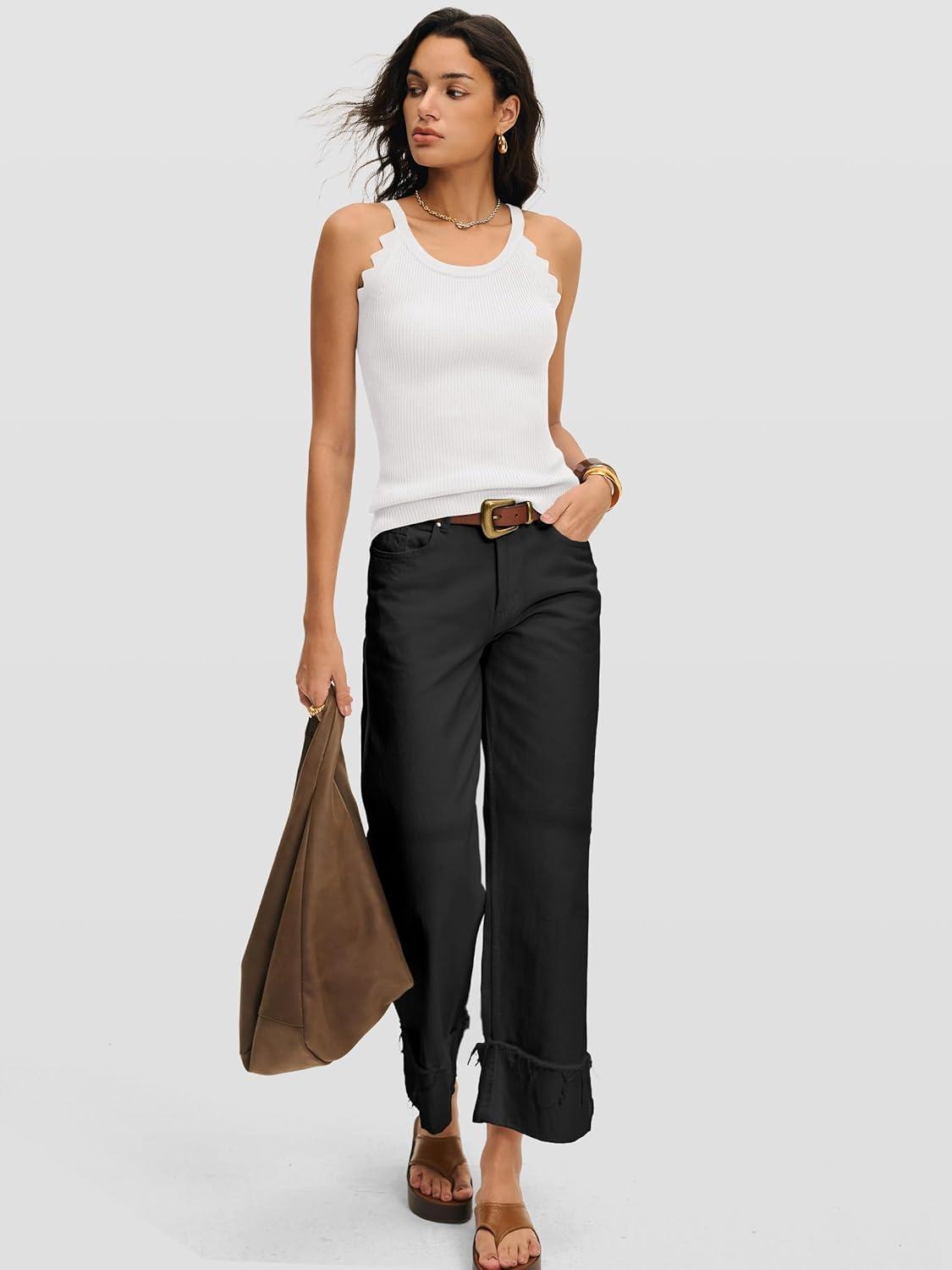 ANRABESS Womens Camisole Tank Tops Sleeveless Cami Sweater Spaghetti Strap Ribbed Shirts 2026 Summer Beach Vacation Clothes(Black)