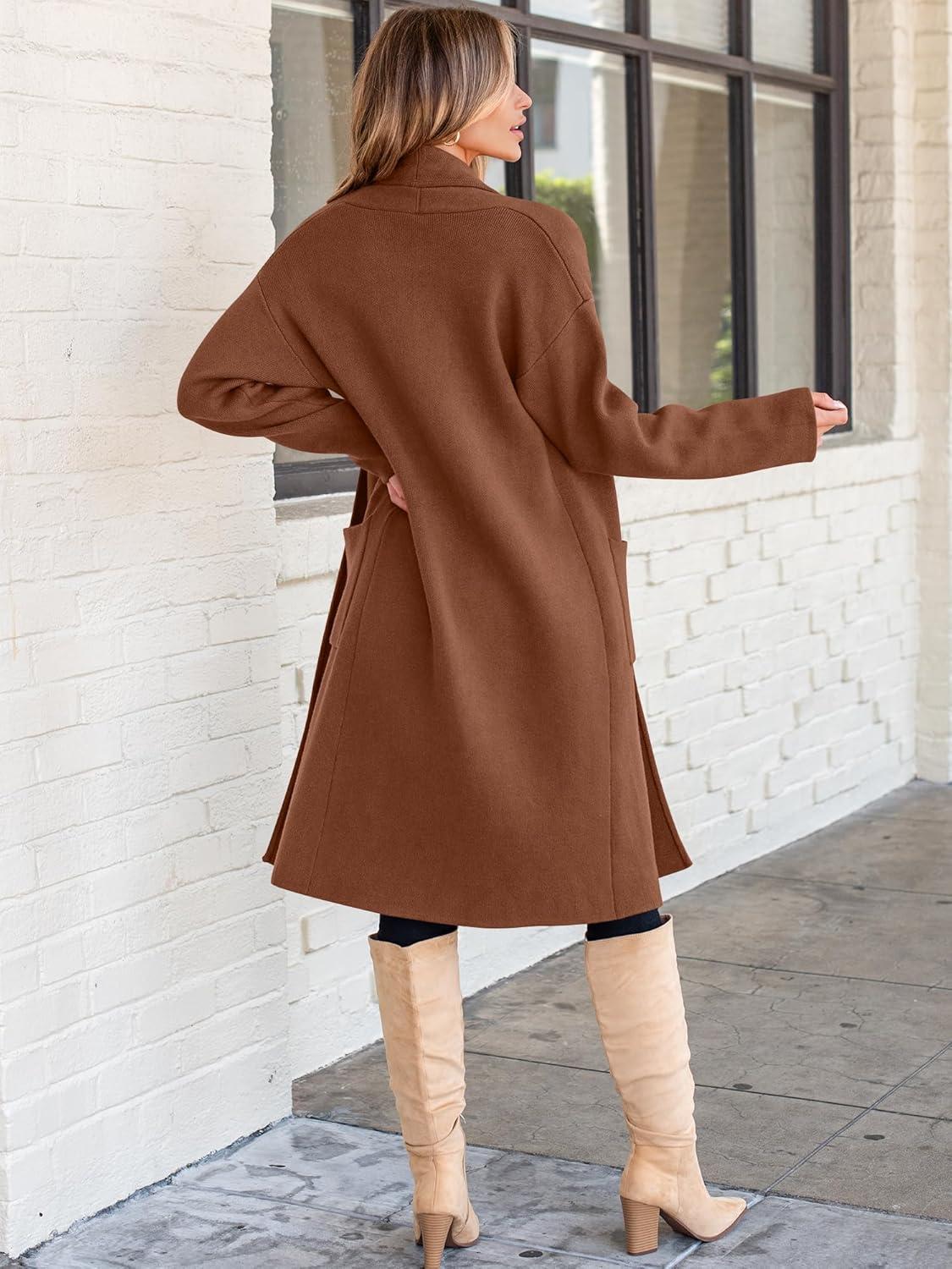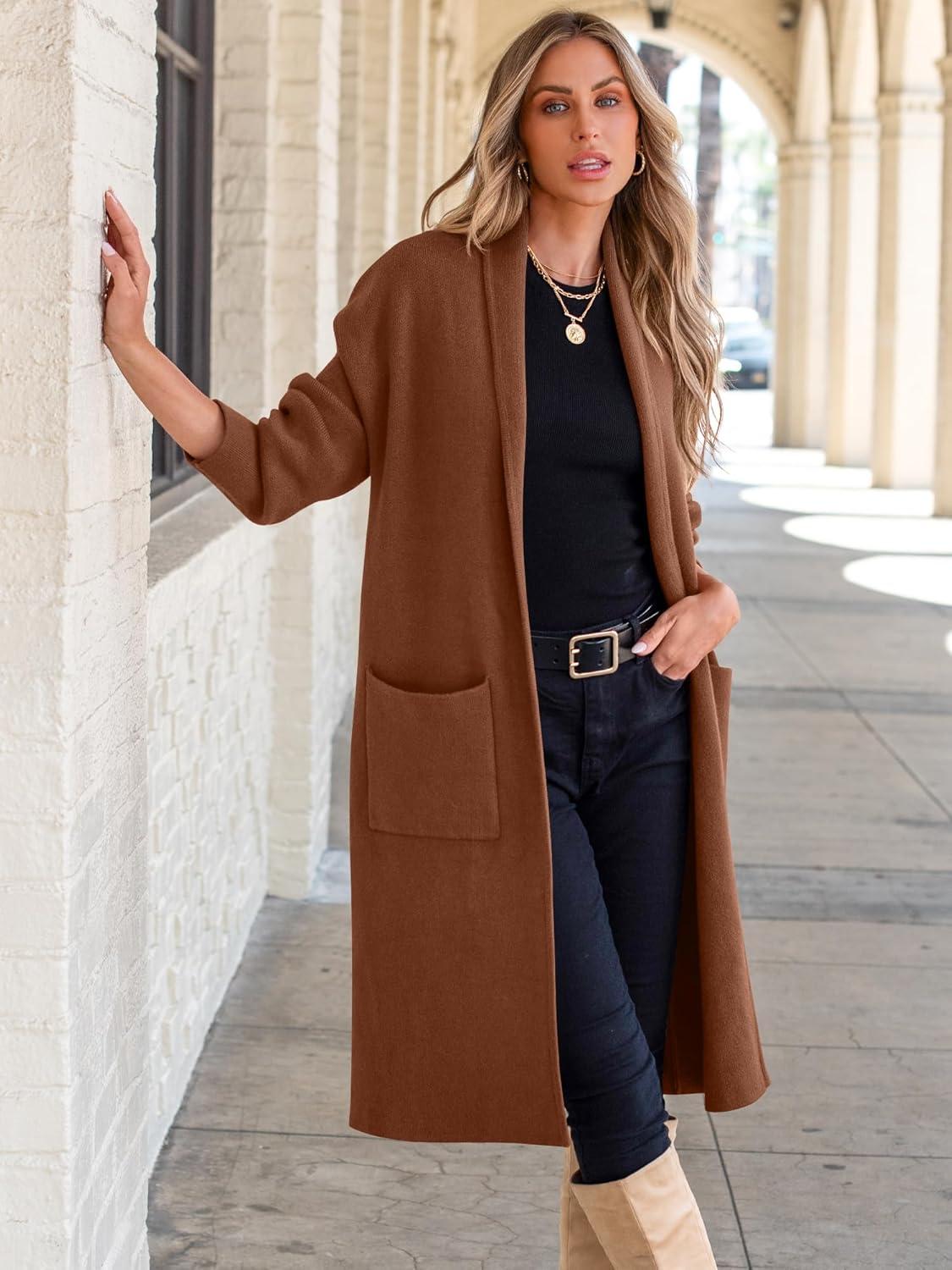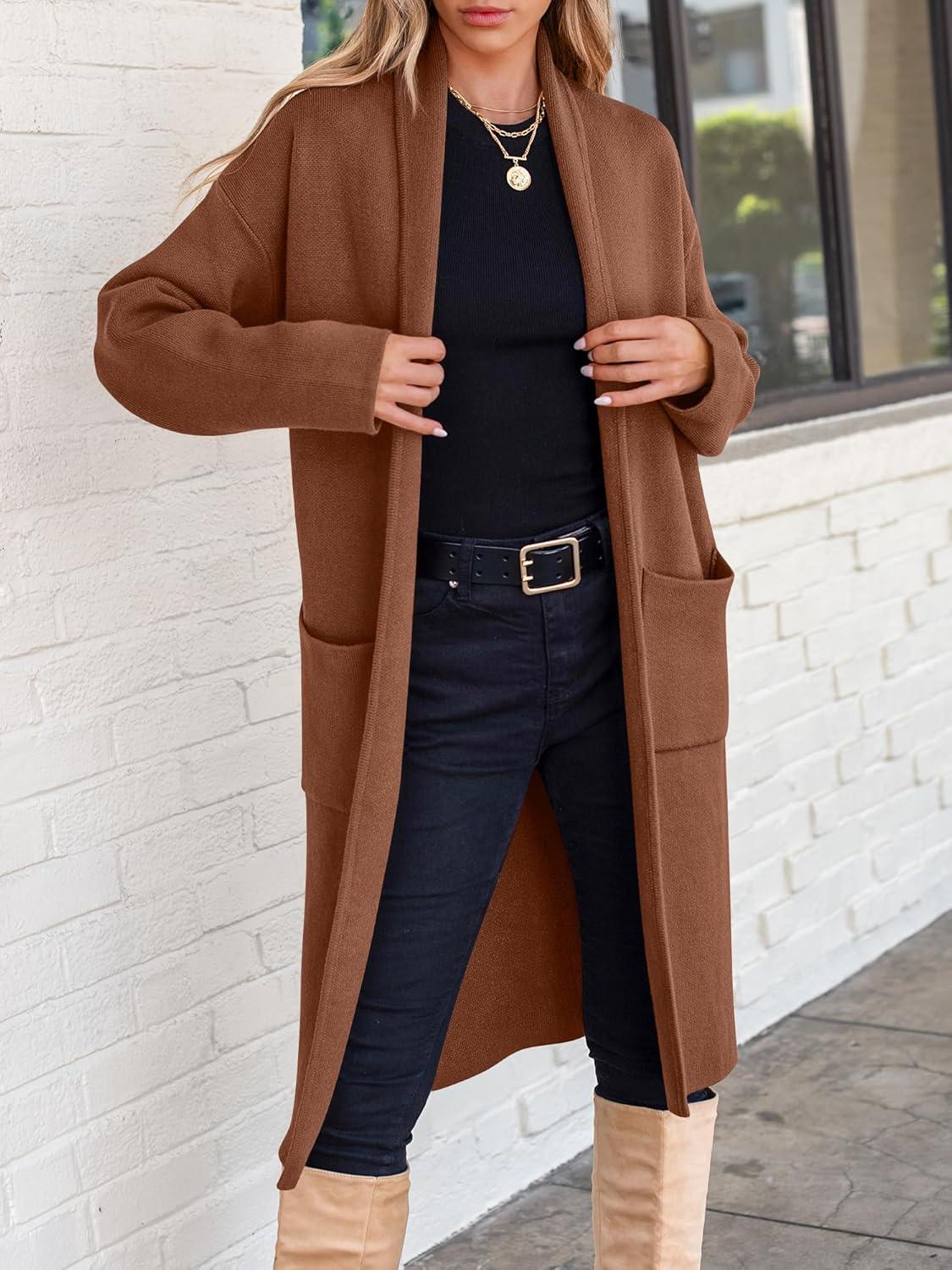 ANRABESS Women's Cardigan Long Sweater Oversized Open Front Knit Coatigan Duster Coat 2025 Trendy Fall Outfits Outerwear(Coffee)