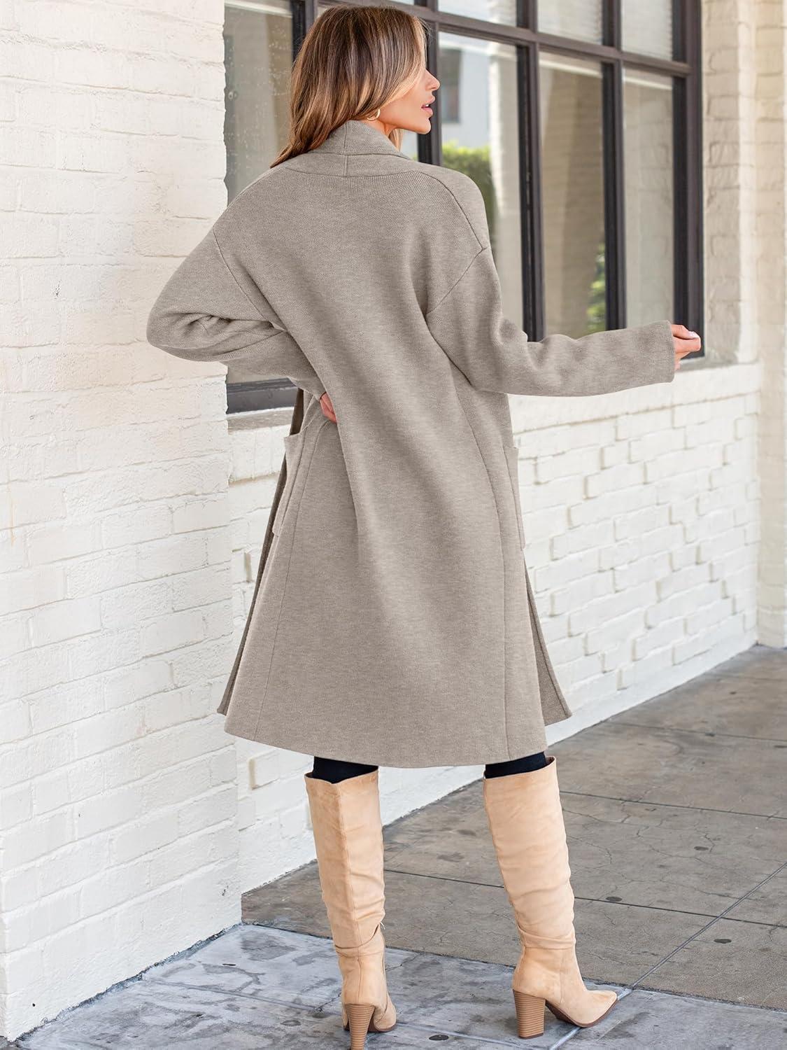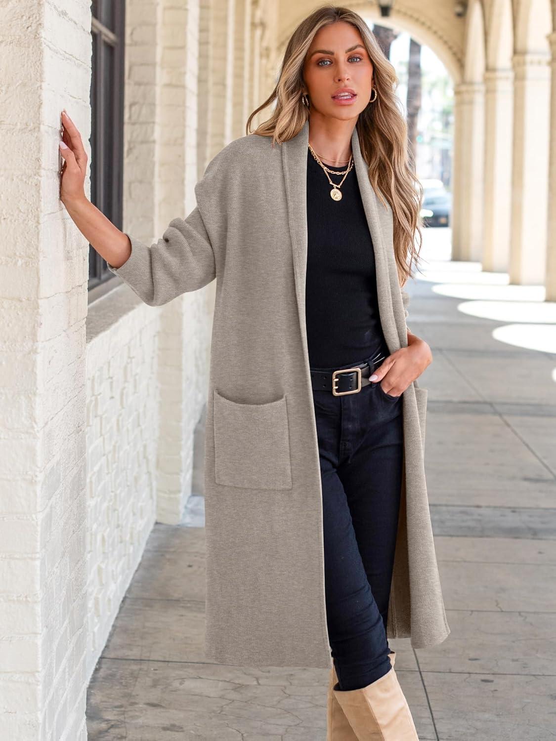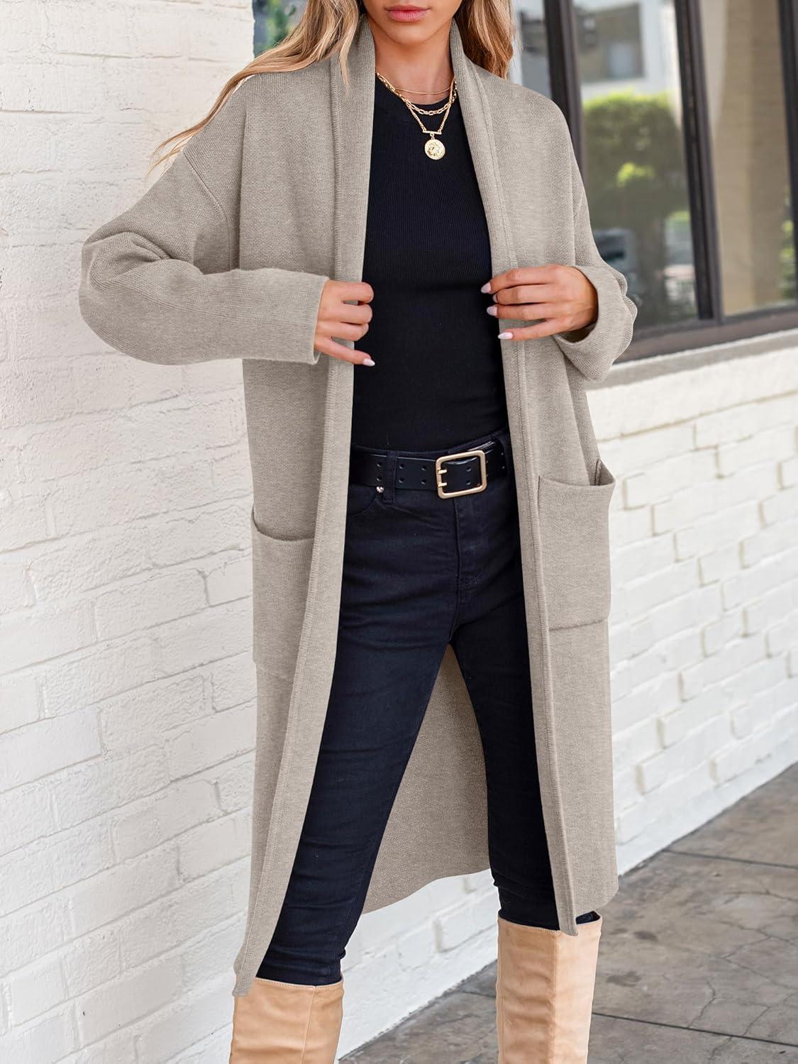 ANRABESS Women’s Cardigan Long Sweater Oversized Open Front Knit Coatigan Duster Coat 2025 Trendy Fall Outfits Outerwear(Light Grey)