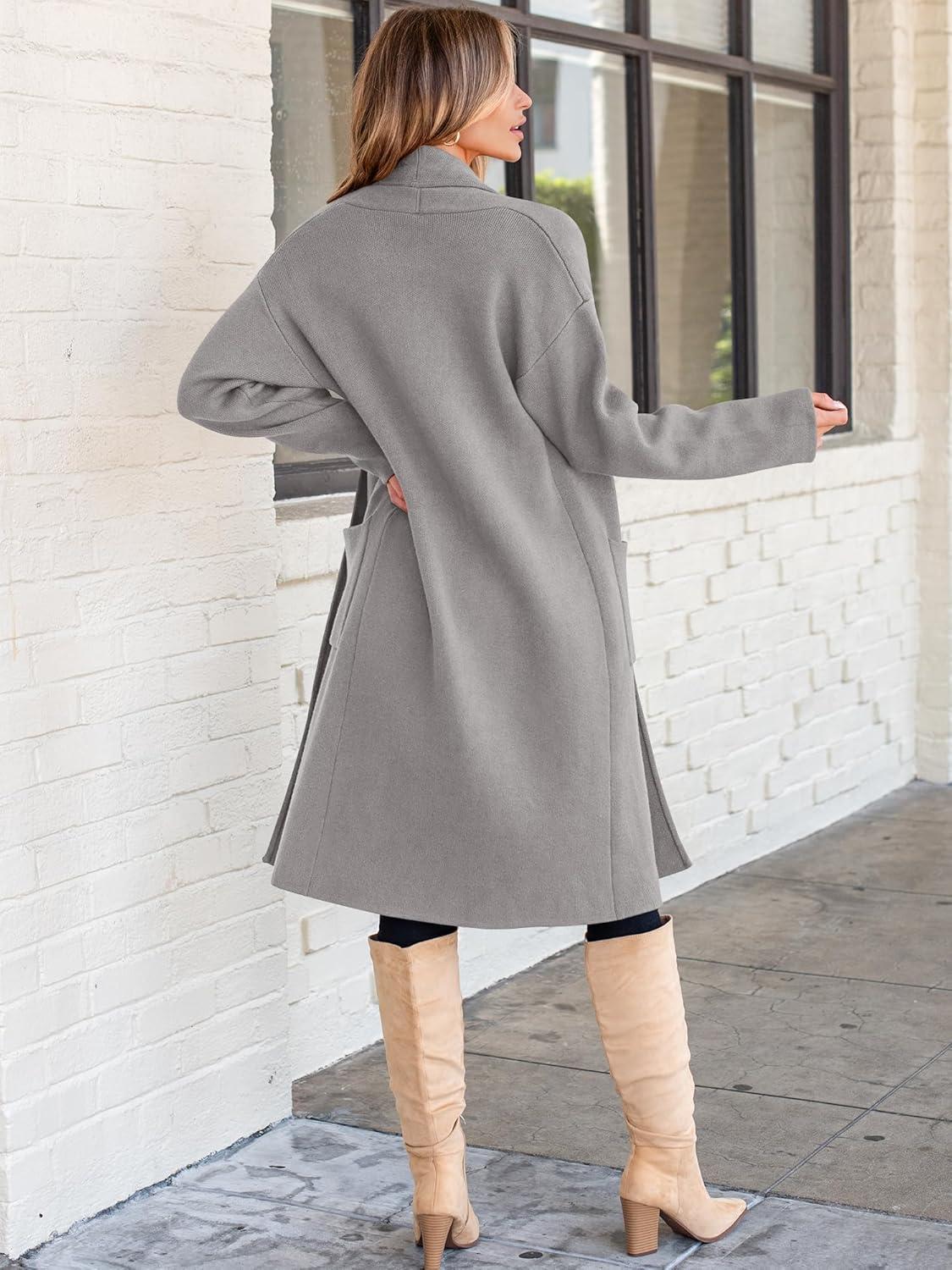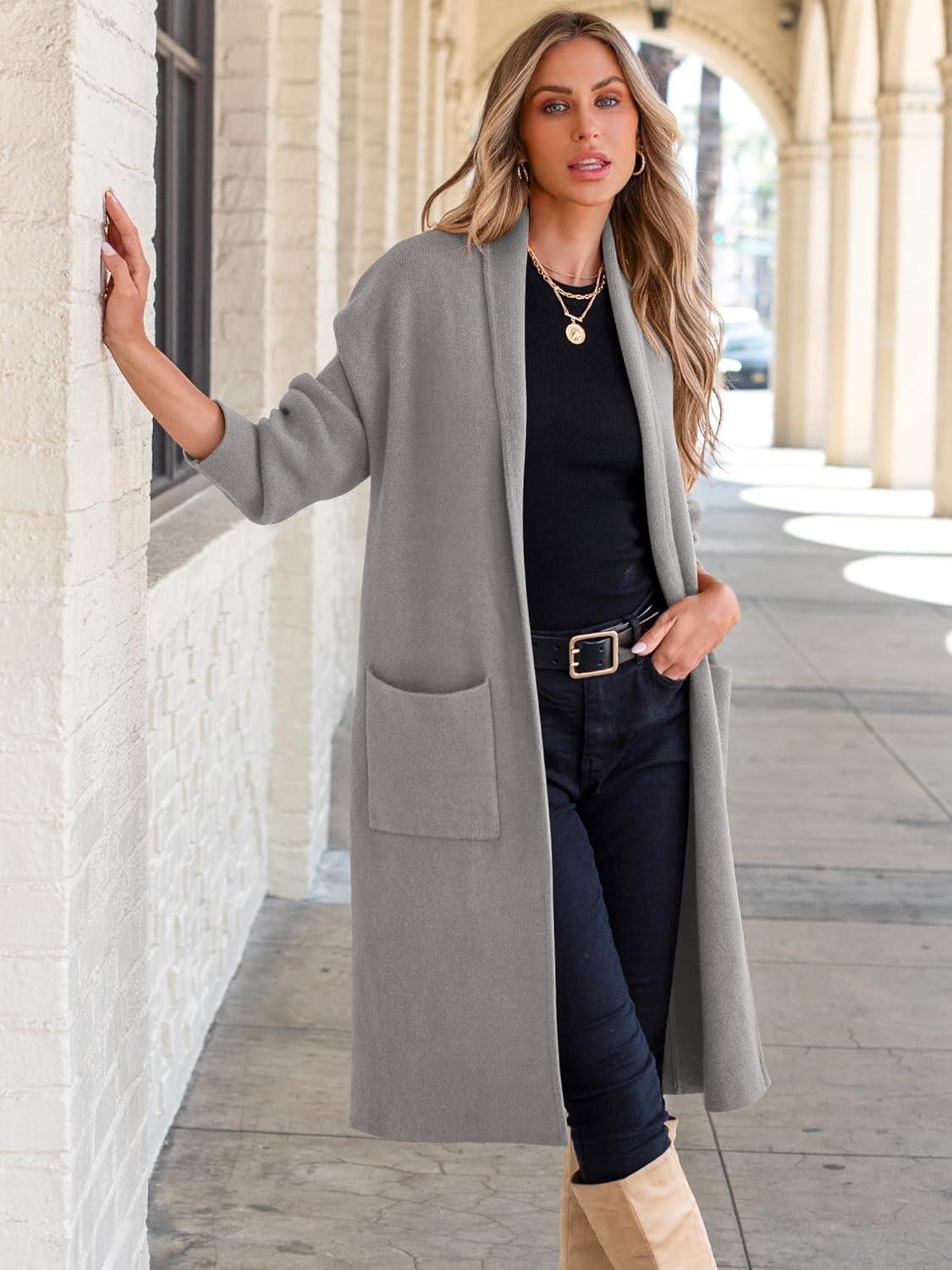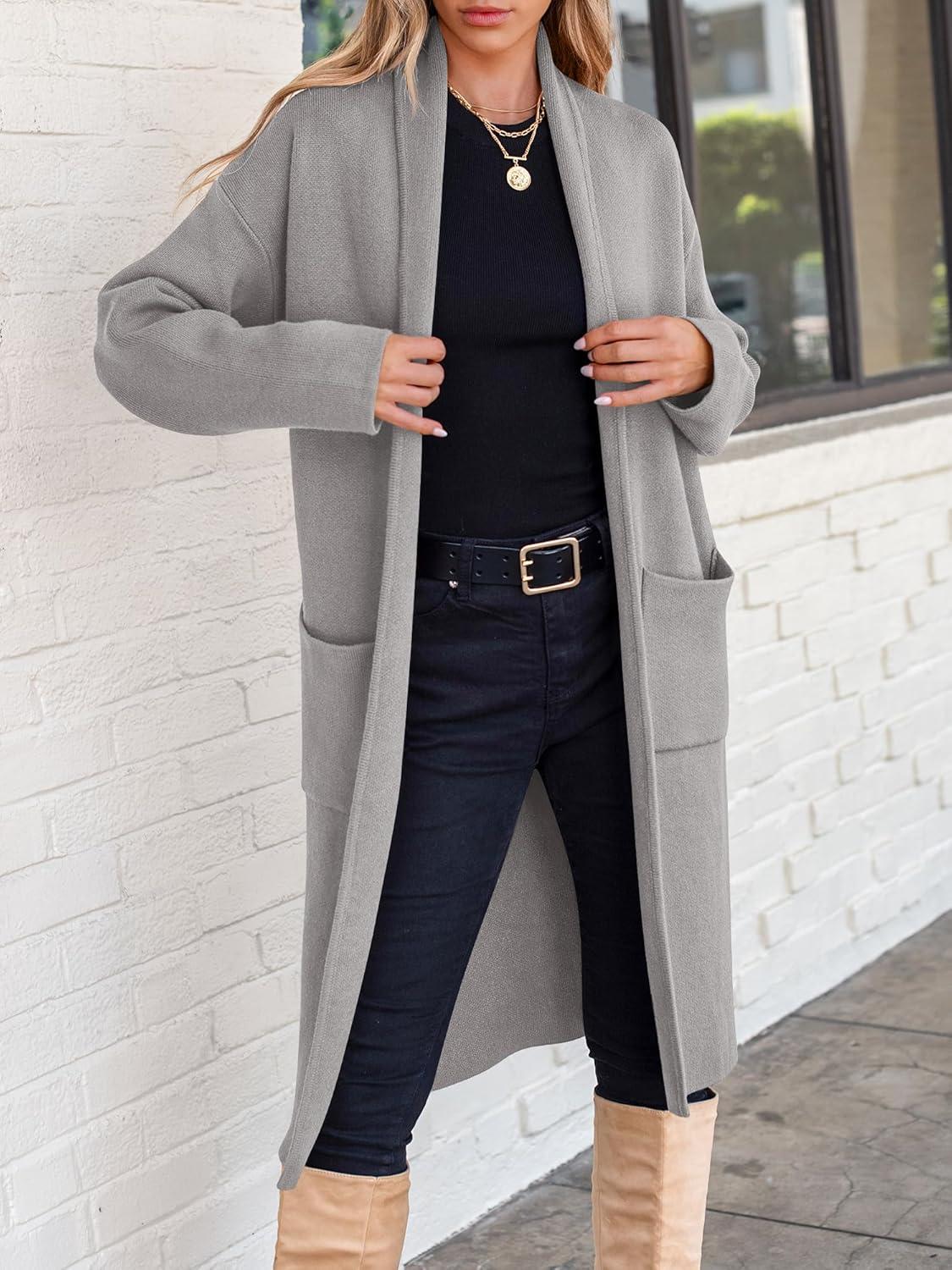 ANRABESS Women’s Cardigan Long Sweater Oversized Open Front Knit Coatigan Duster Coat 2025 Trendy Fall Outfits Outerwear(Gray)