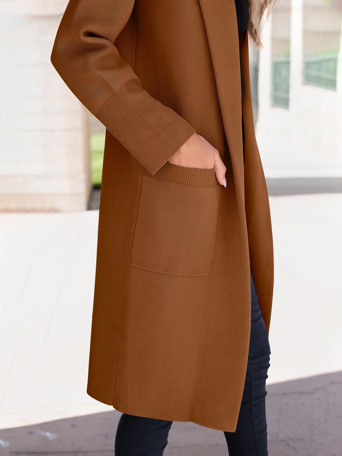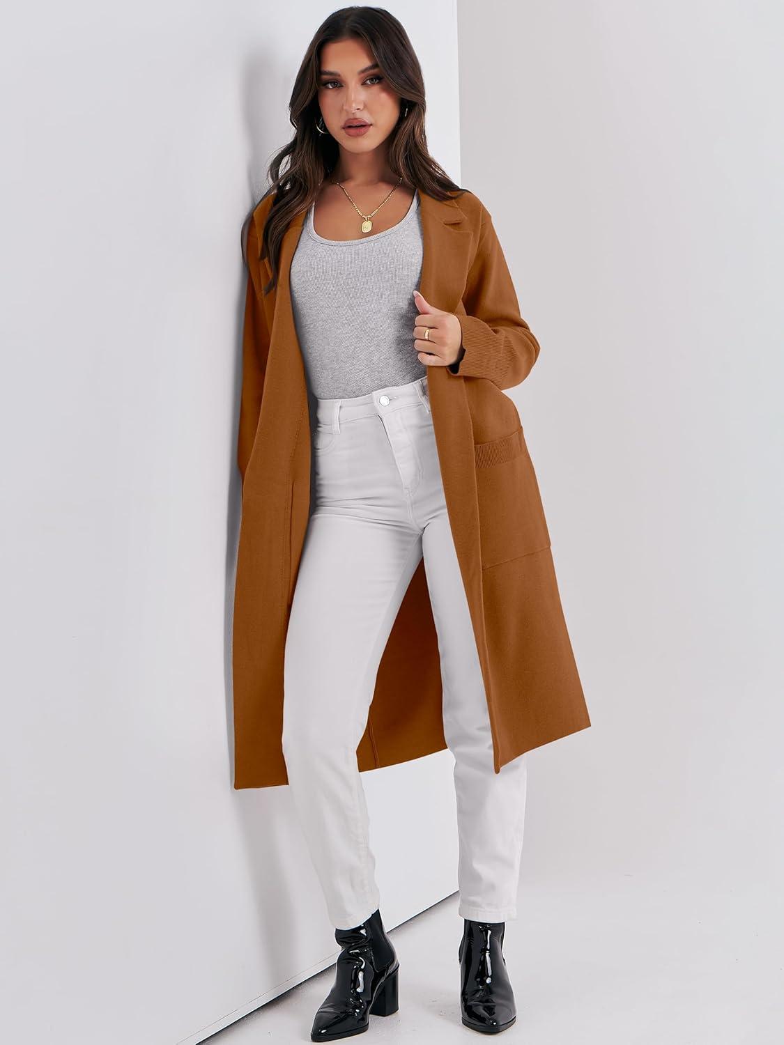 ANRABESS Womens Cardigan Sweater 2025 Fall Outfits Knitted Lapel Long Coats Coatigans(Caramel)