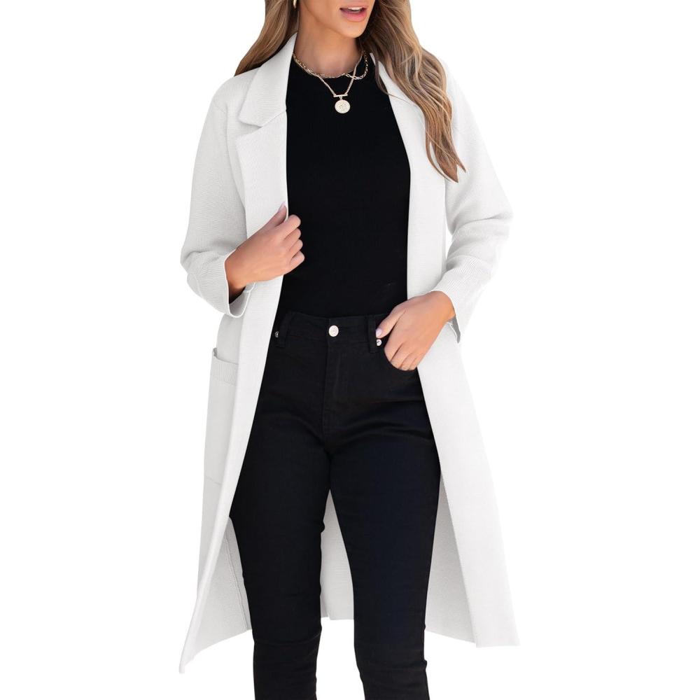 ANRABESS Womens Cardigan Sweater 2025 Fall Outfits Knitted Lapel Long Coats Coatigans(Cream White)