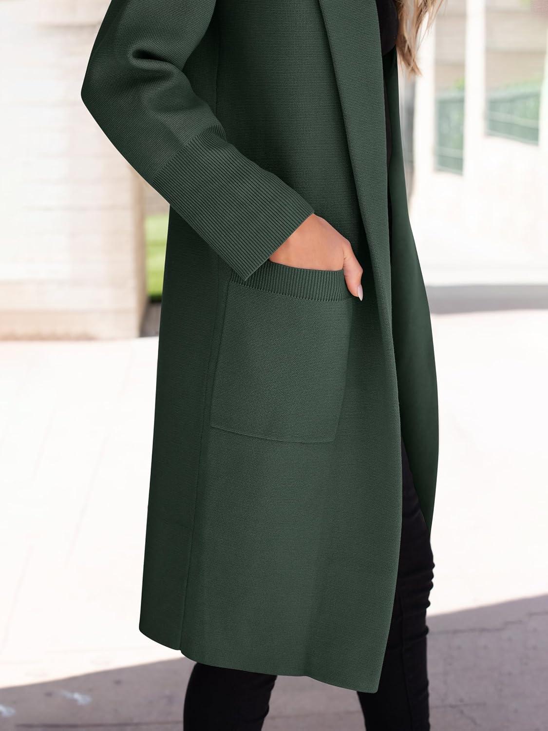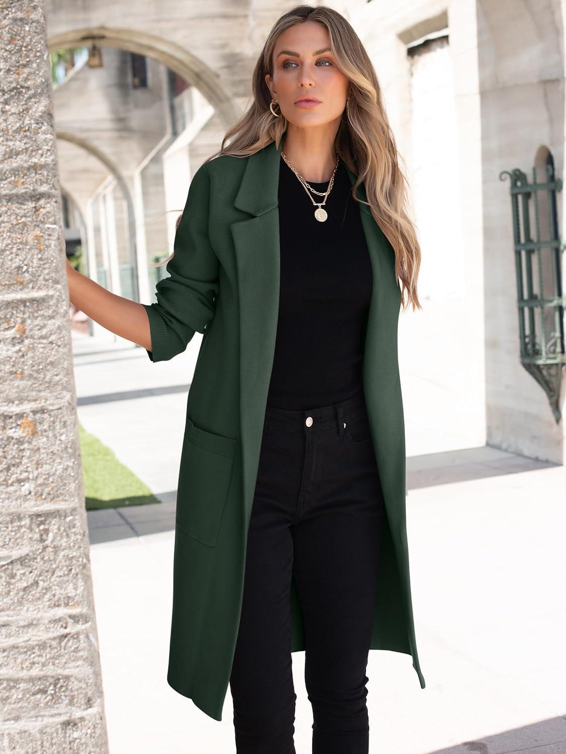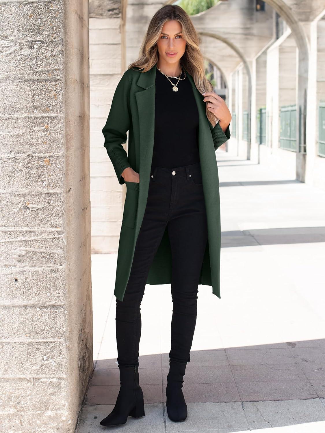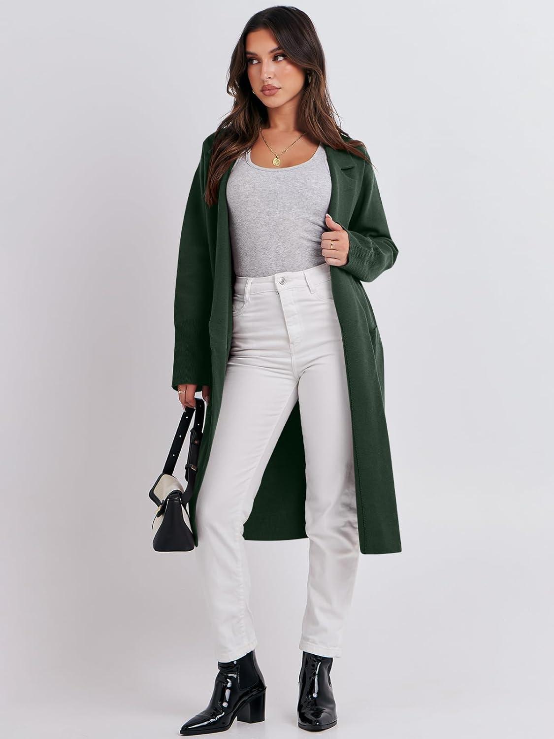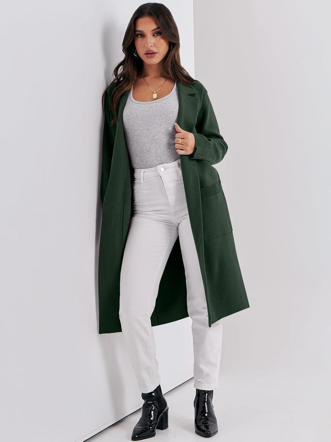 ANRABESS Womens Cardigan Sweater 2025 Fall Outfits Knitted Lapel Long Coats Coatigans(Deep Green)