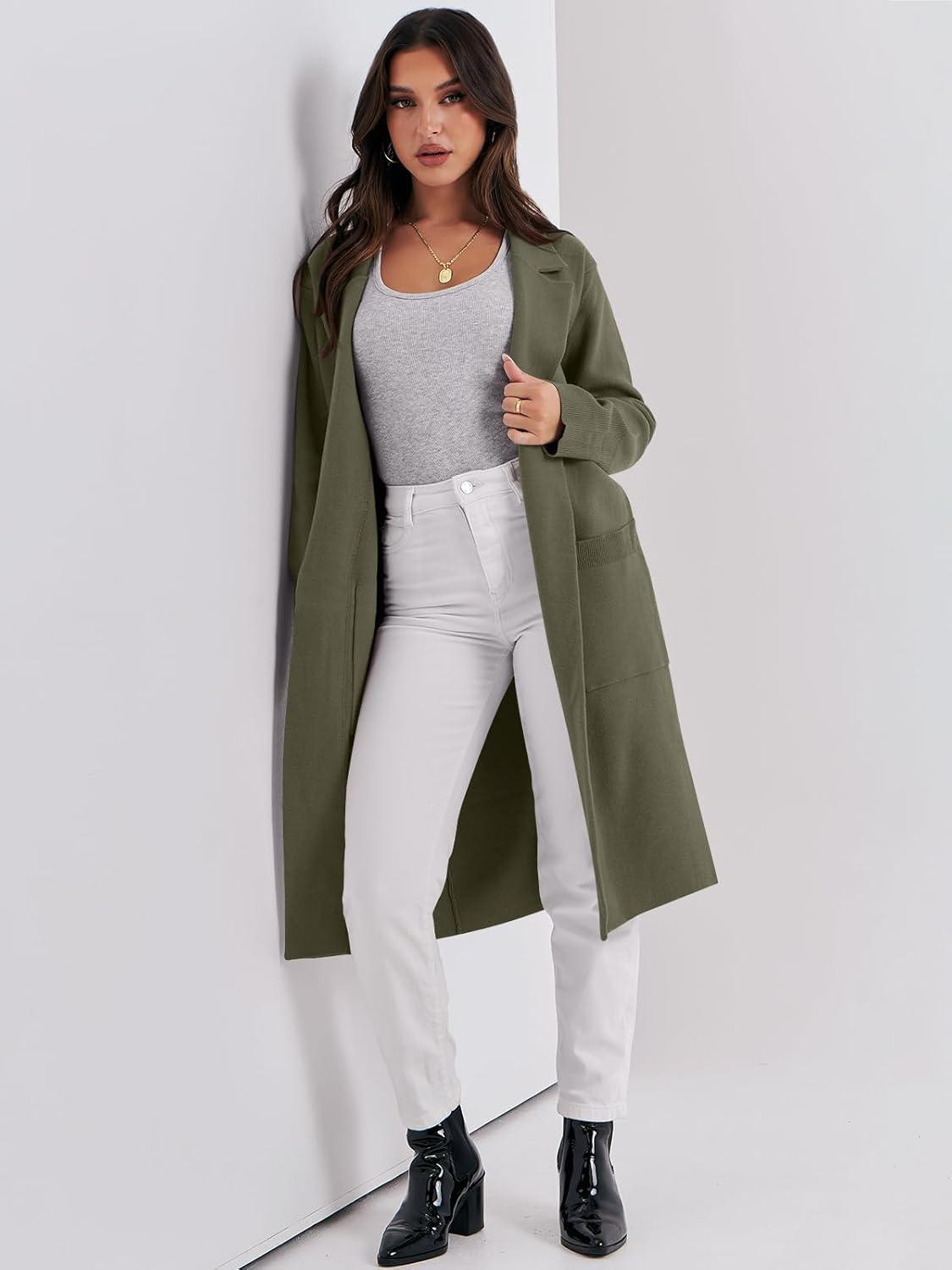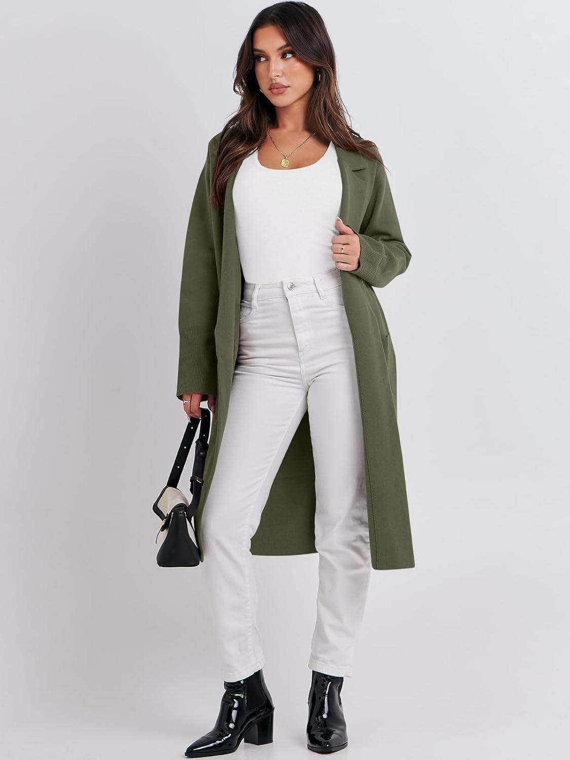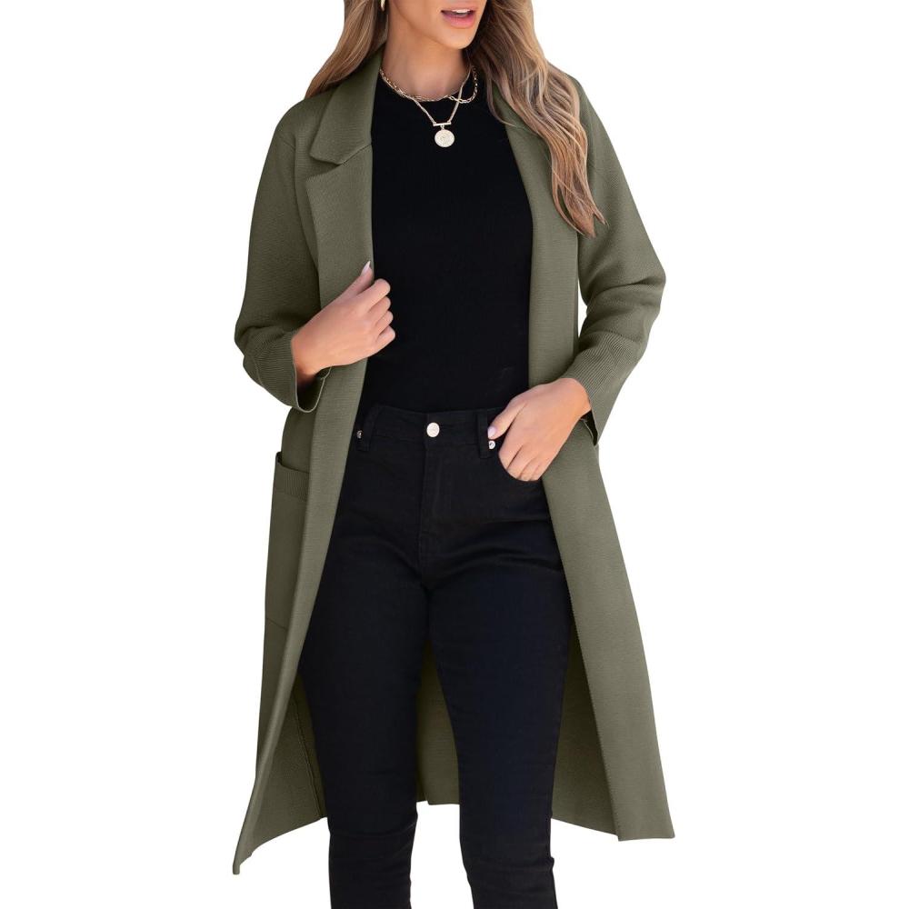 ANRABESS Womens Cardigan Sweater 2025 Fall Outfits Knitted Lapel Long Coats Coatigans(Olive)