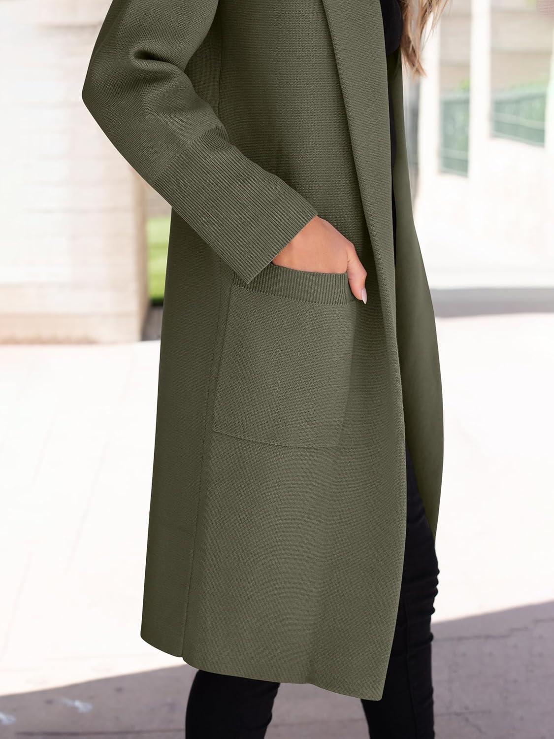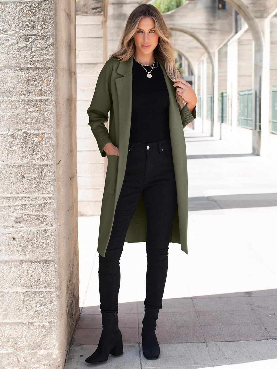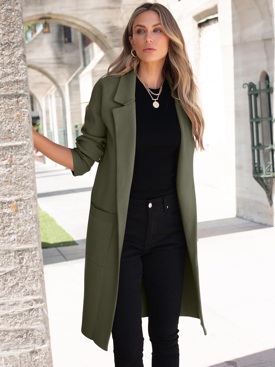 ANRABESS Womens Cardigan Sweater 2025 Fall Outfits Knitted Lapel Long Coats Coatigans(Olive)