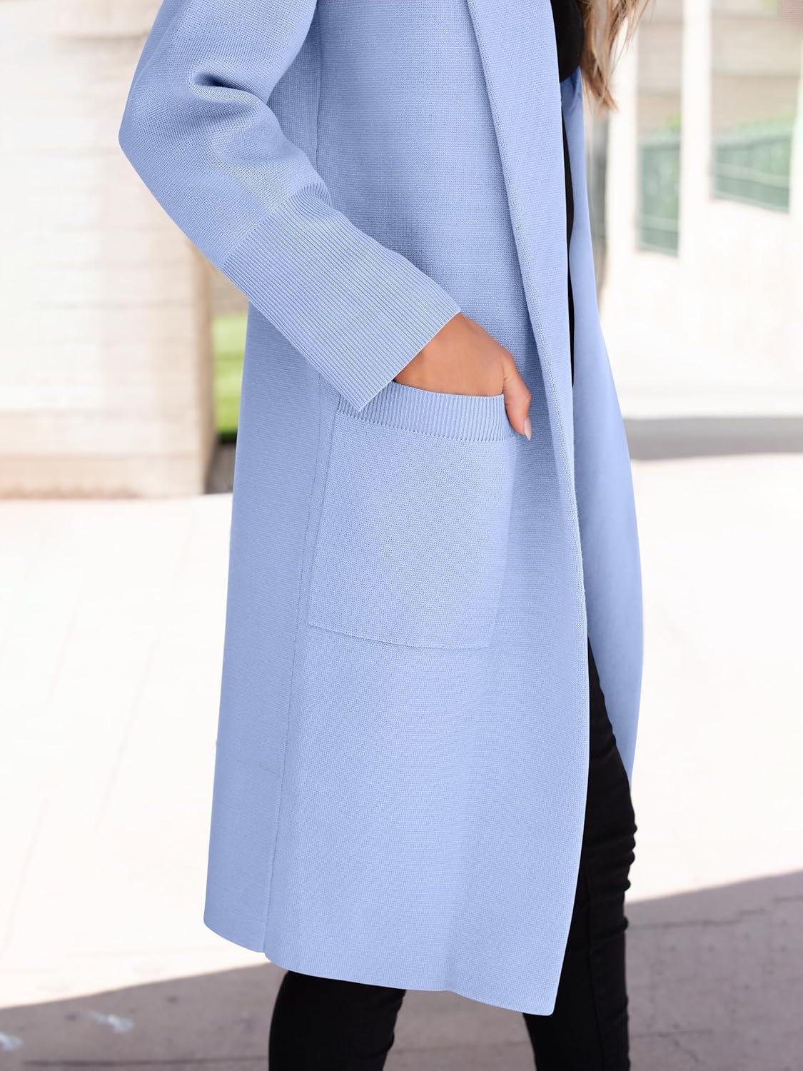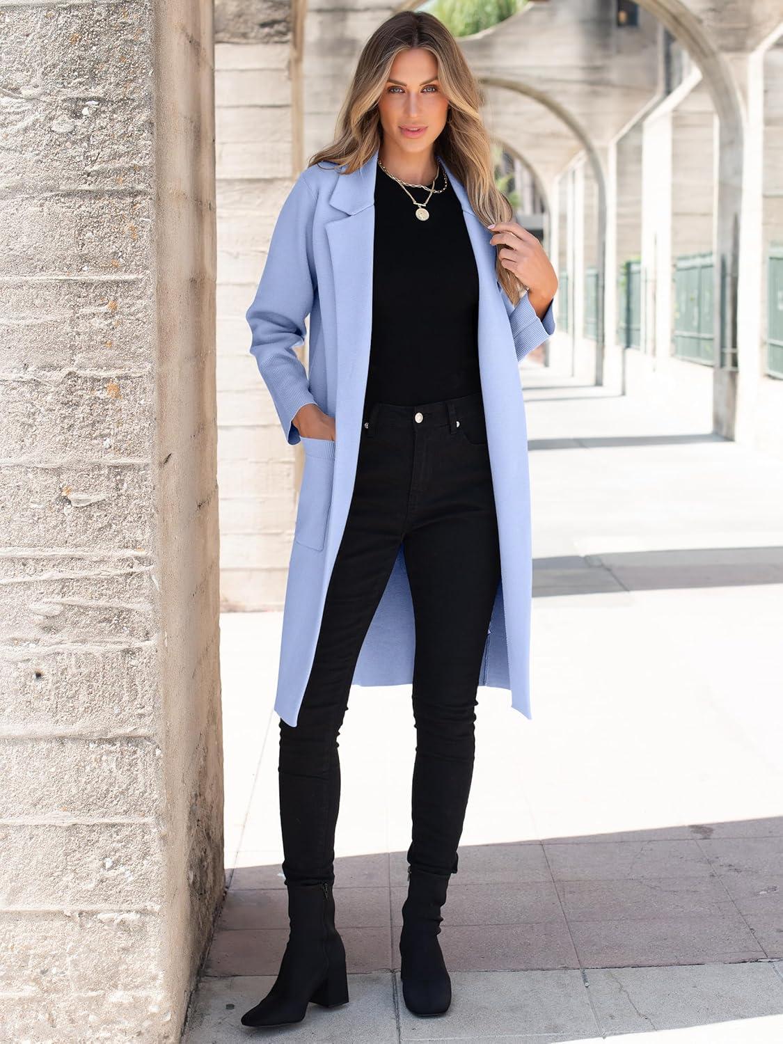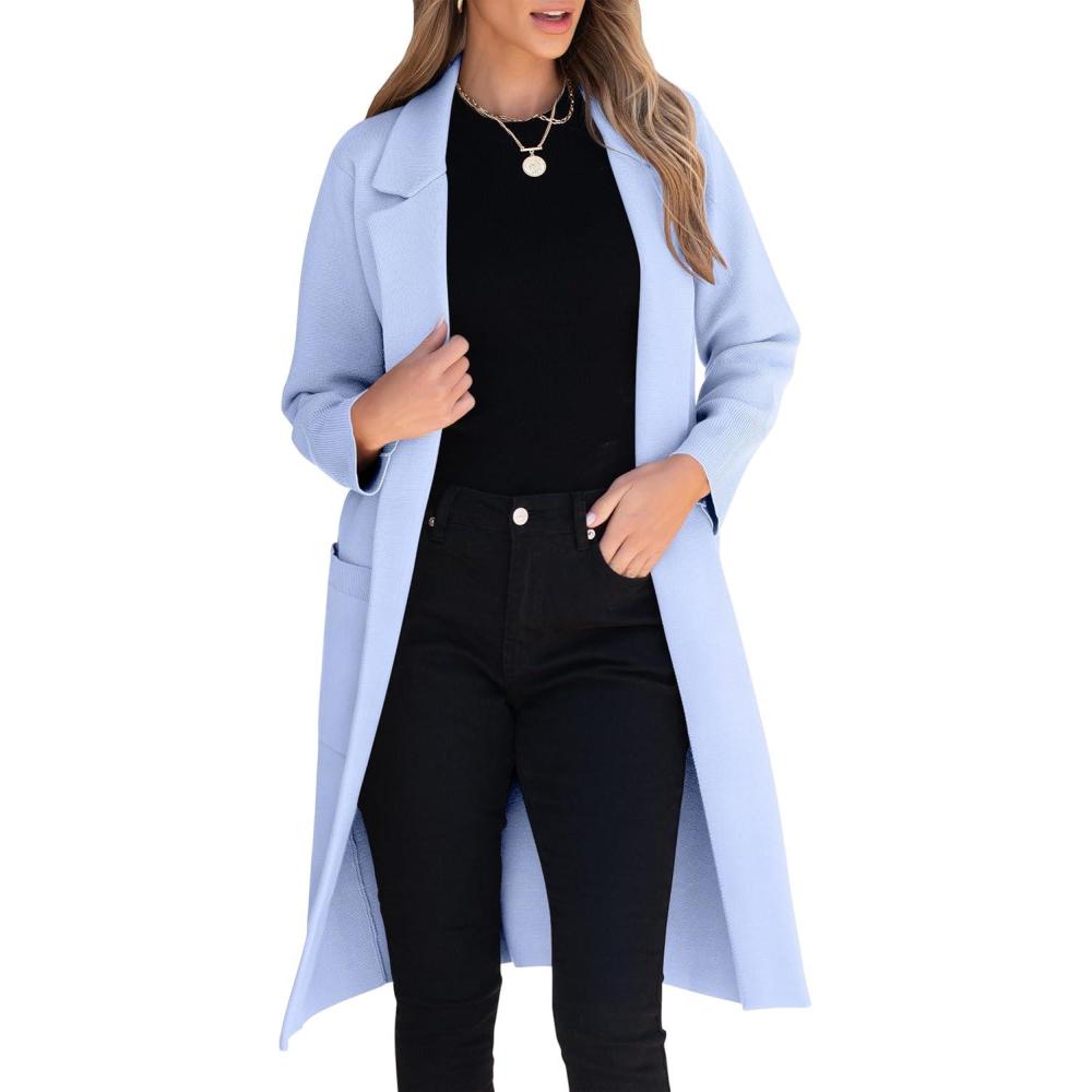 ANRABESS Womens Cardigan Sweater 2025 Fall Outfits Knitted Lapel Long Coats Coatigans(Sky)