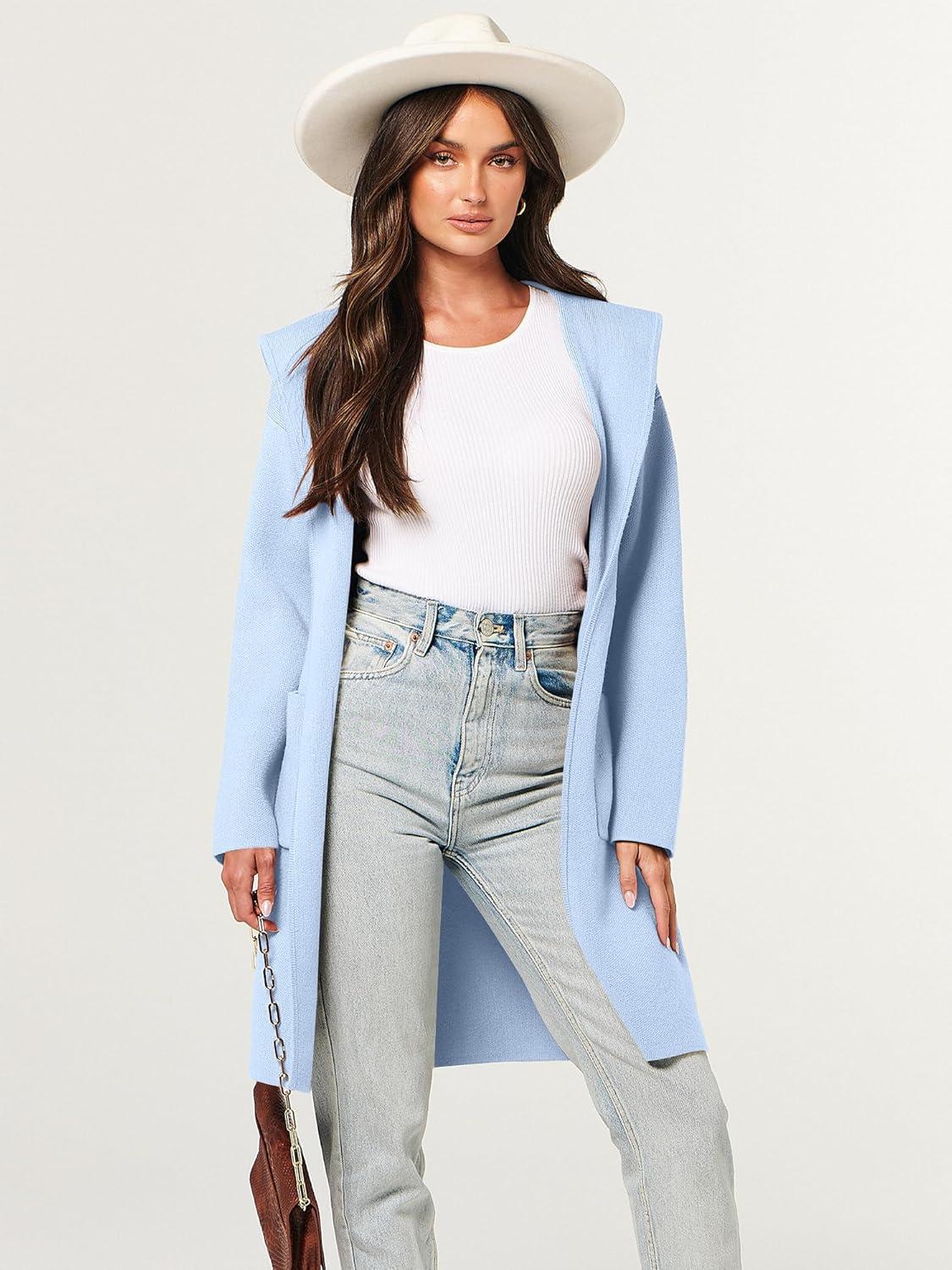 ANRABESS Womens Cardigan Sweater Oversized Coatigan Knitted Hooded Coat 2025 Fall Outfits Outwear(Sky)