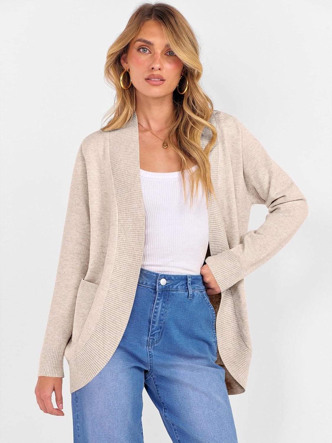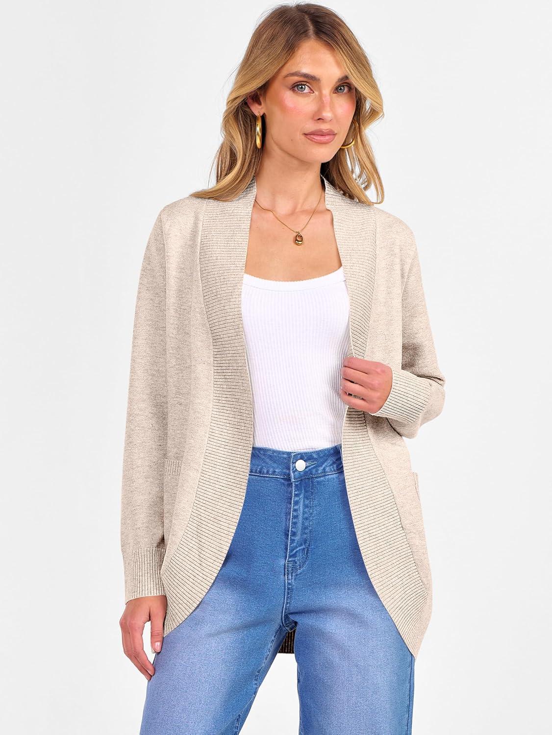ANRABESS Womens Cardigan Sweaters Open Front Long Sleeve Shawl Neck Dressy Casual 2025 Trendy Fall Winter Knit Outerwear Coat(Almond)