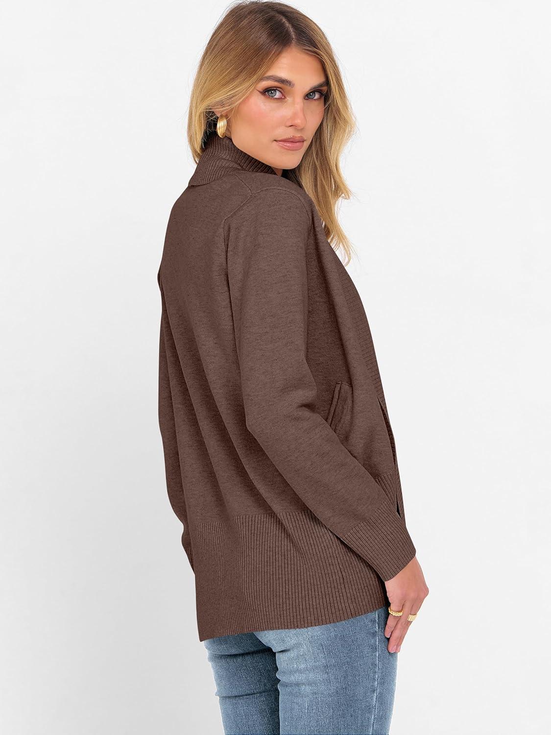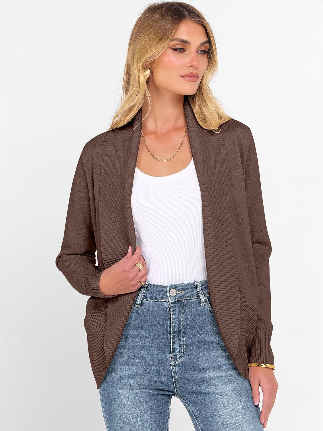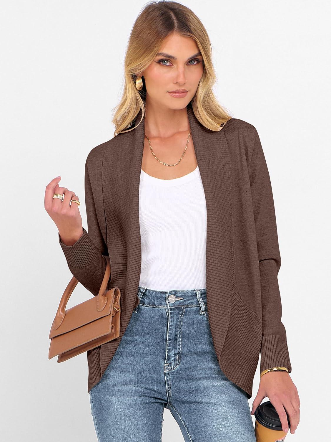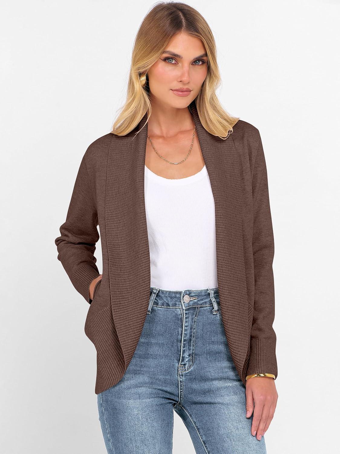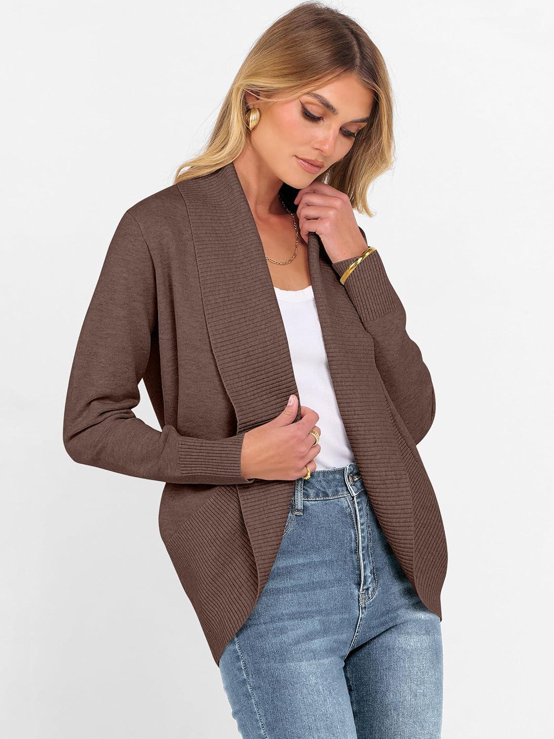 ANRABESS Womens Cardigan Sweaters Open Front Long Sleeve Shawl Neck Knit Dressy Casual 2025 Trendy Fall Winter Outerwear Coat(Coffee)