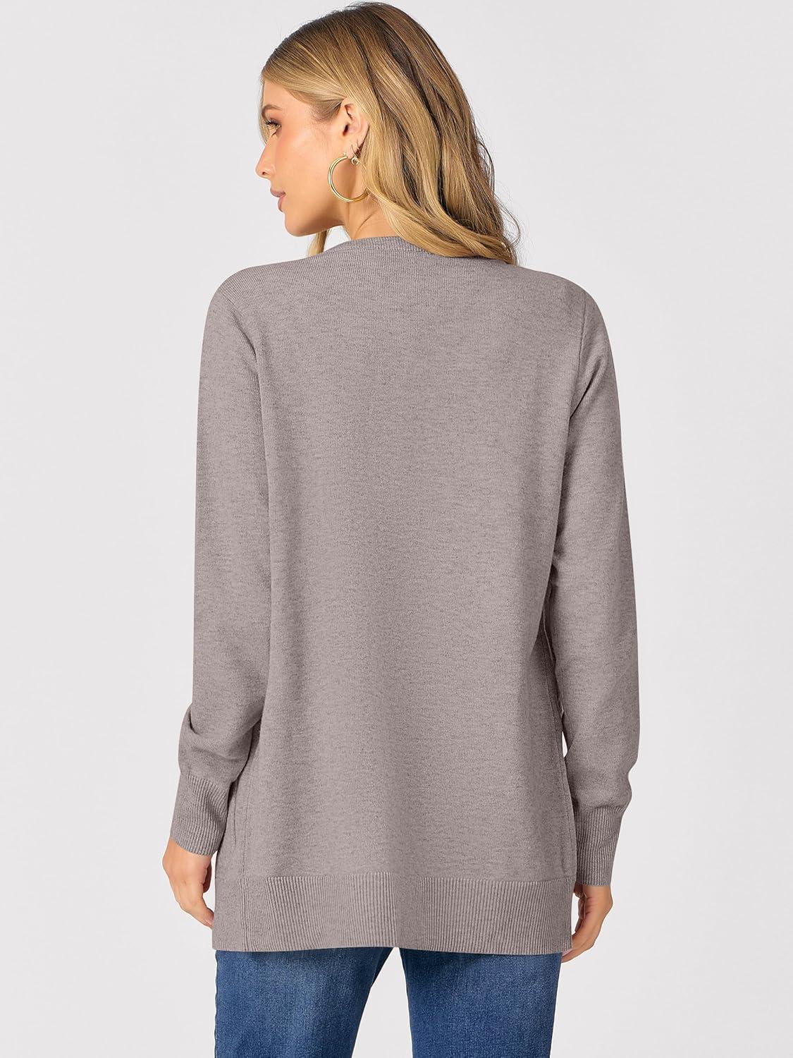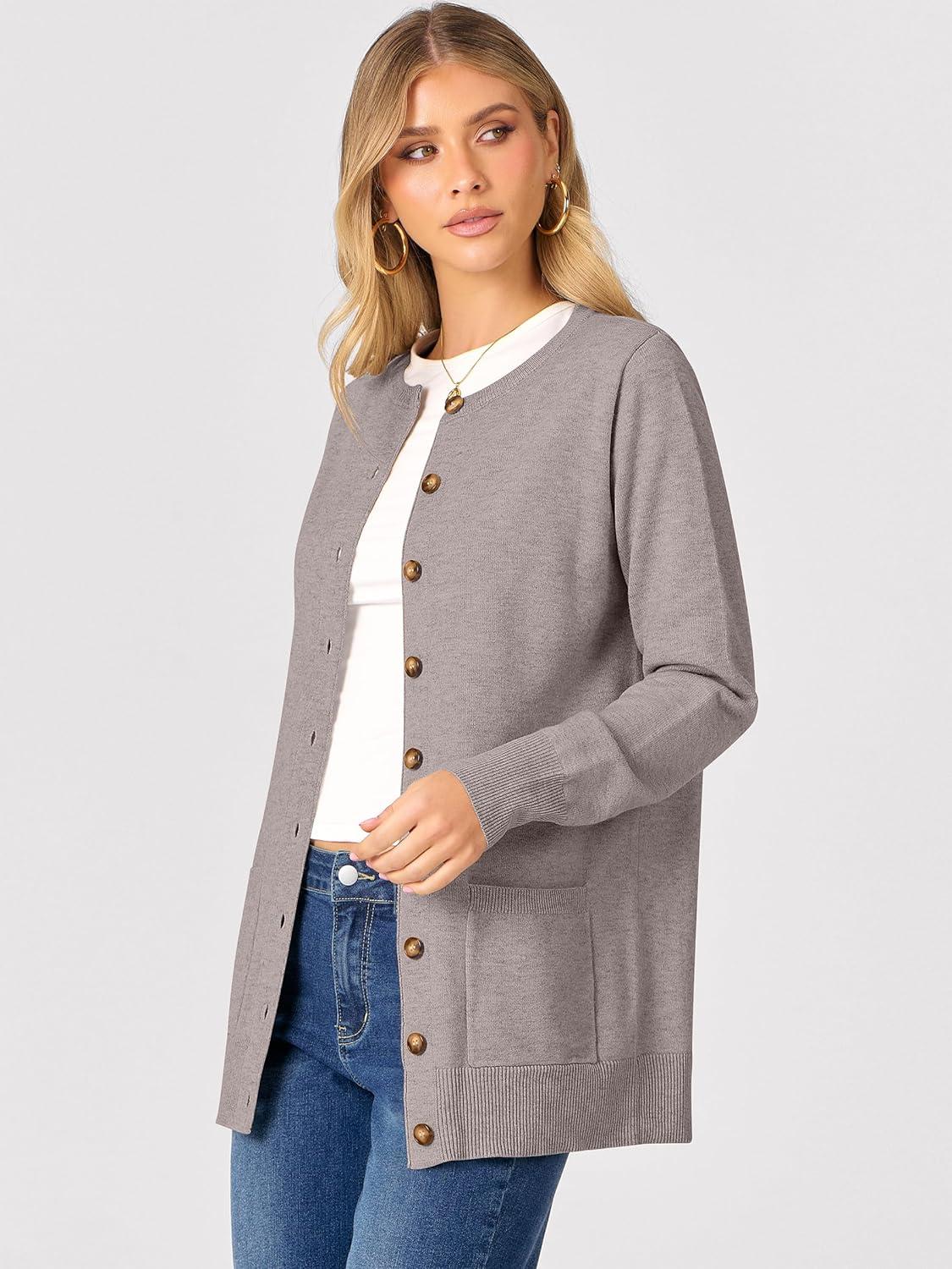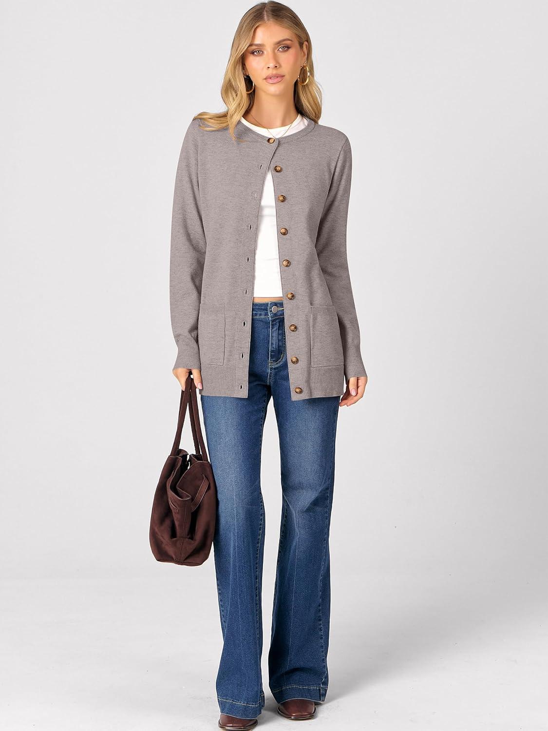 ANRABESS Women’s Cardigans 2025 Fall Dressy Casual Long Sleeve Crewneck Button Down Open Front Soft Knit Cardigan Sweaters(Deep Taupe)