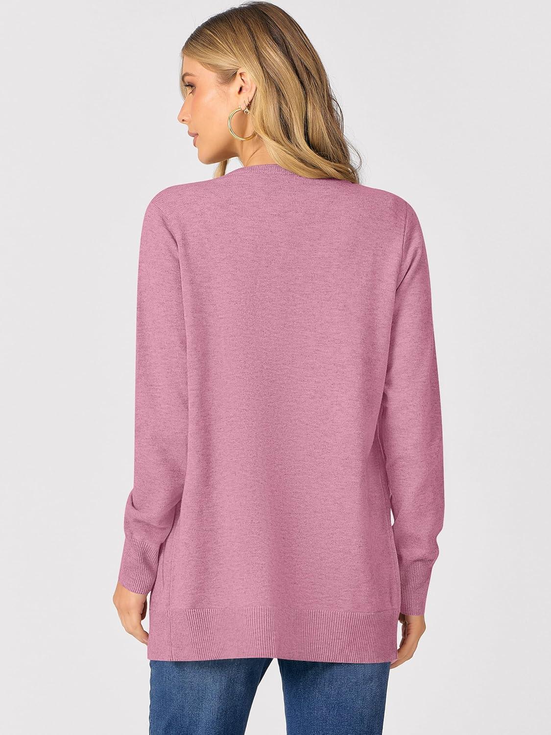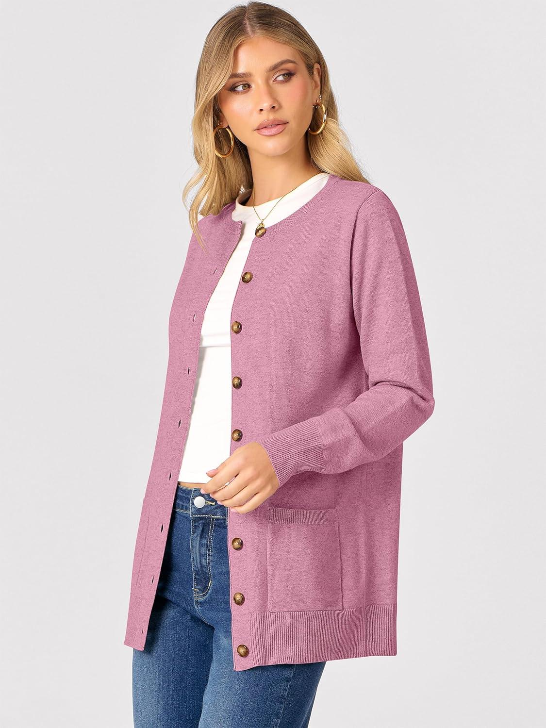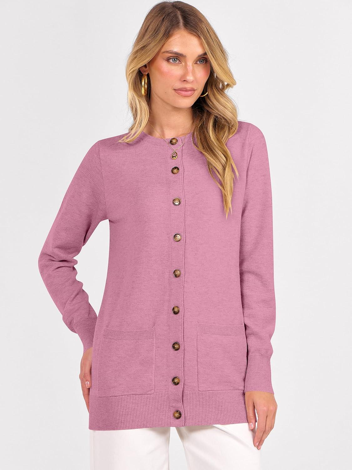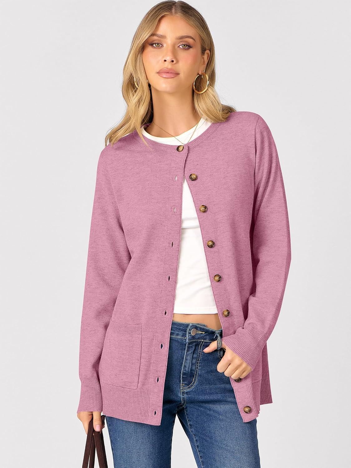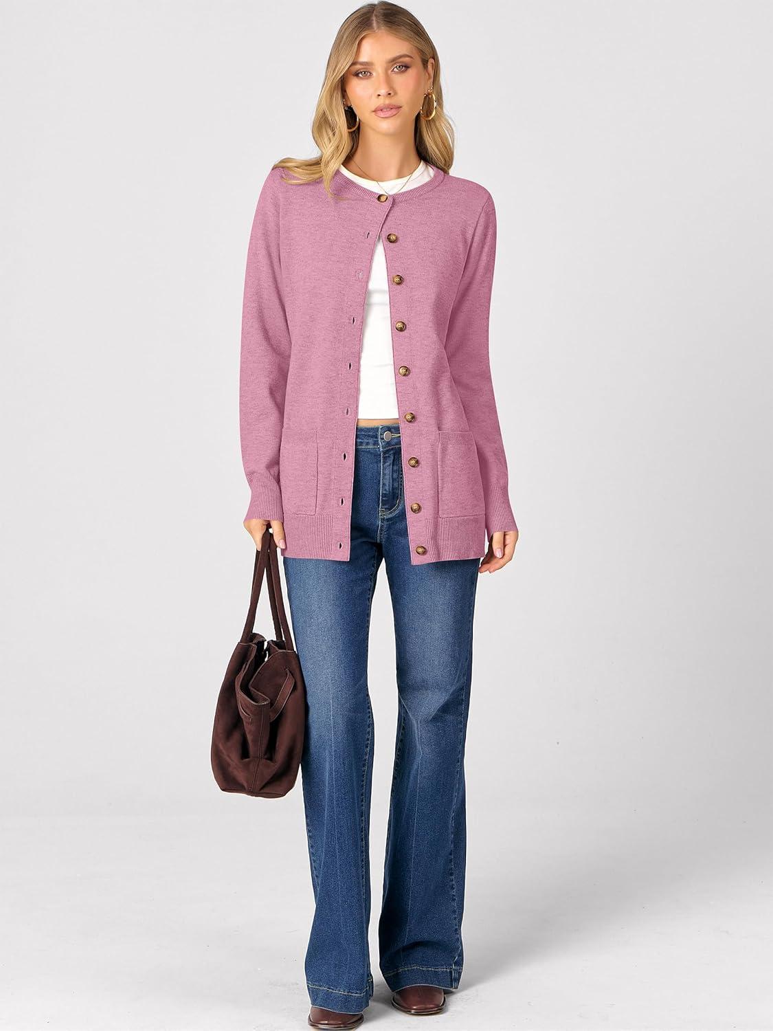 ANRABESS Women’s Cardigans 2025 Fall Dressy Casual Long Sleeve Crewneck Button Down Open Front Soft Knit Cardigan Sweaters(Coral Pink)