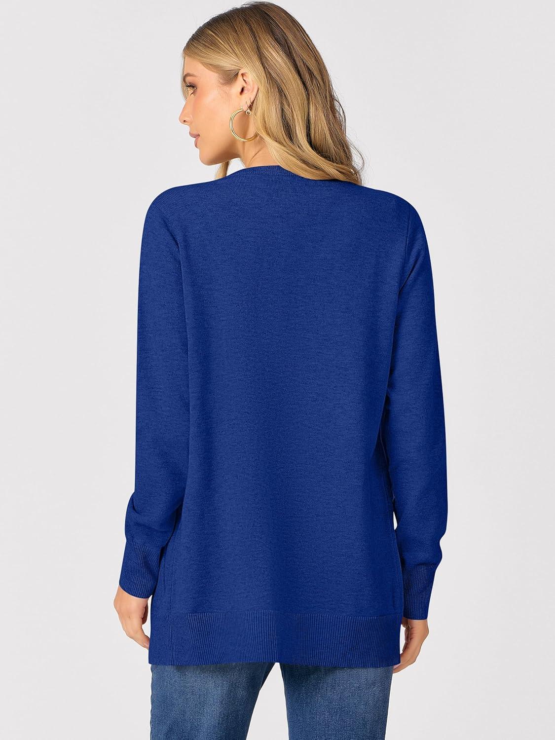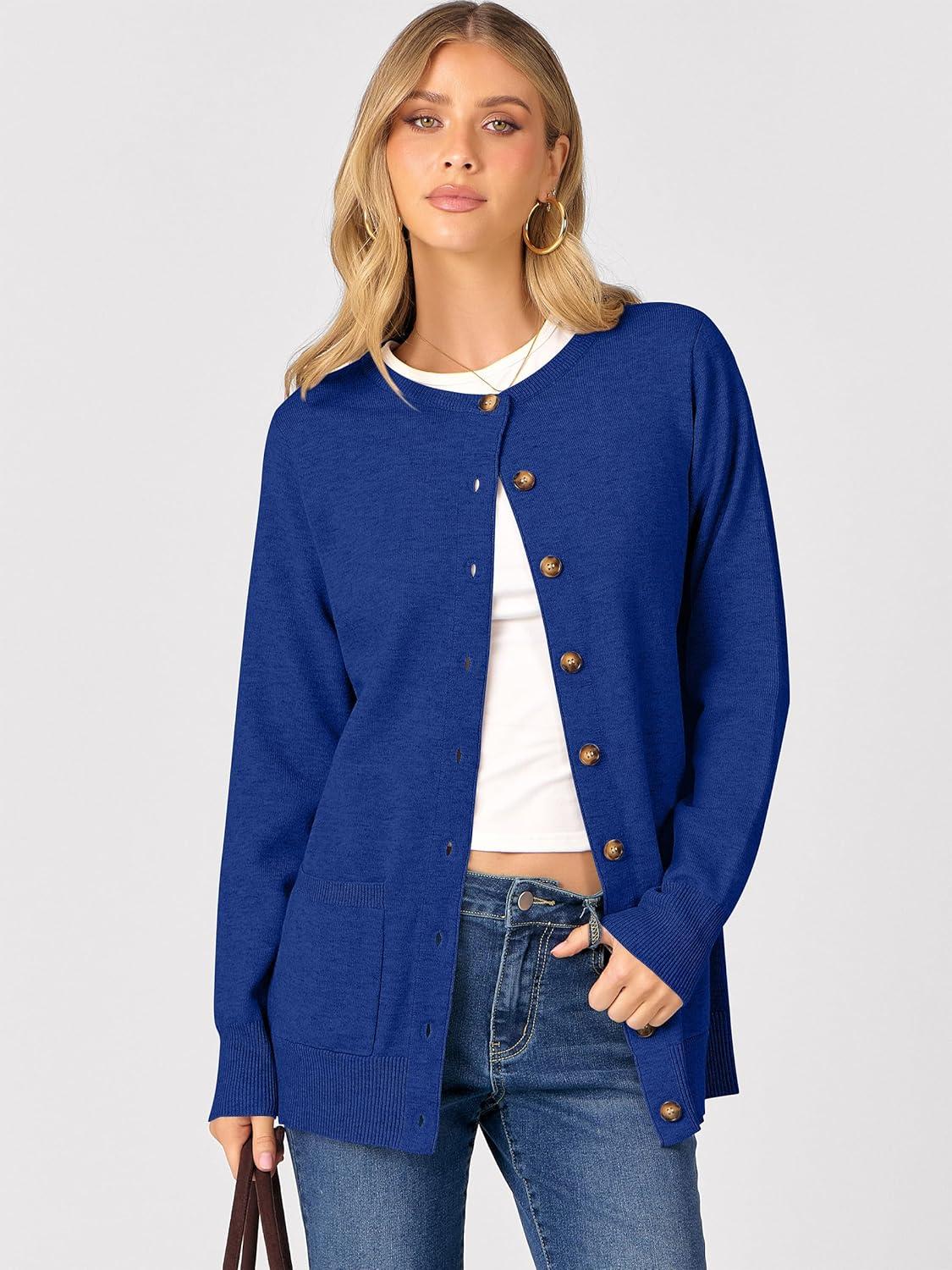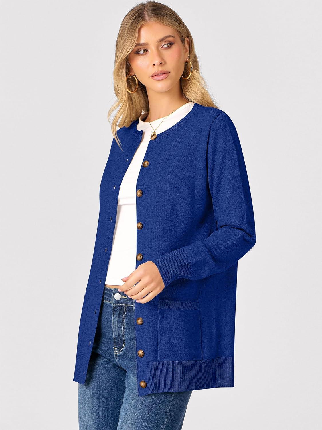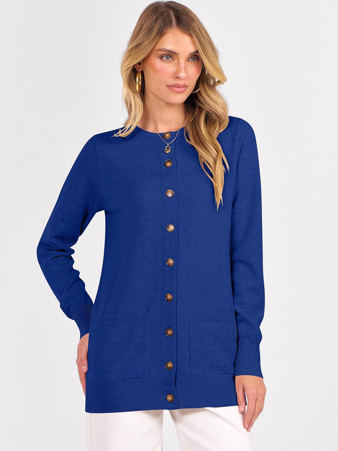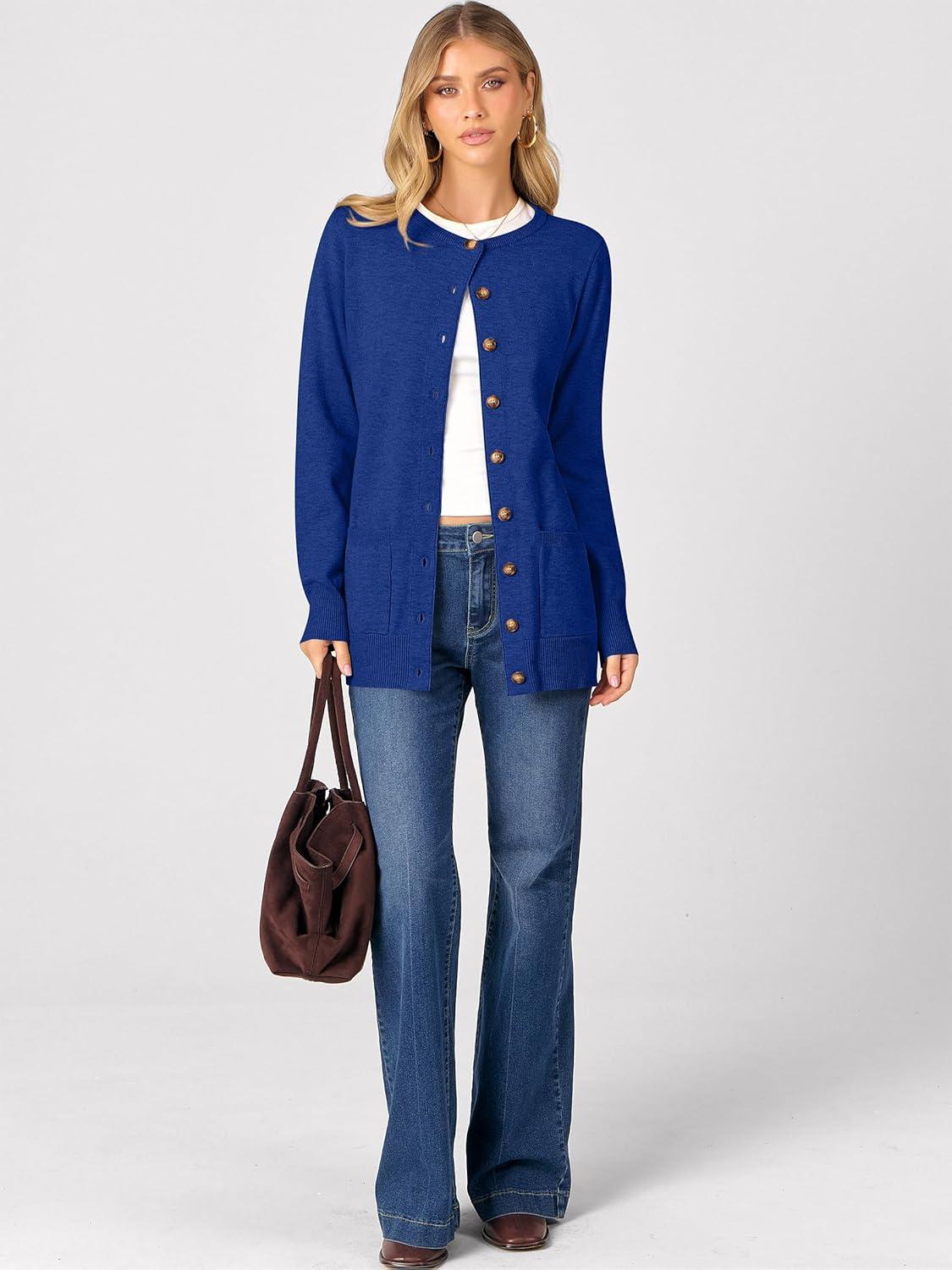 ANRABESS Women’s Cardigans 2025 Fall Dressy Casual Long Sleeve Crewneck Button Down Open Front Soft Knit Cardigan Sweaters(Royal Blue)