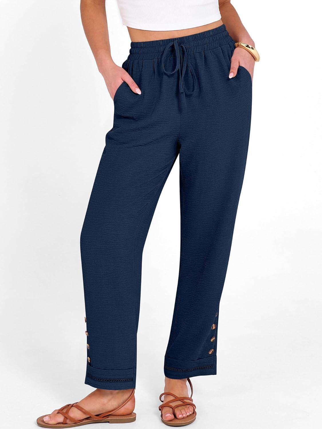 ANRABESS Womens Casual Capri Pants Drawstring Elastic Waist 2026 Summer Loose Ankle Beach Work Cropped Trousers with Pockets(Navy Blue)