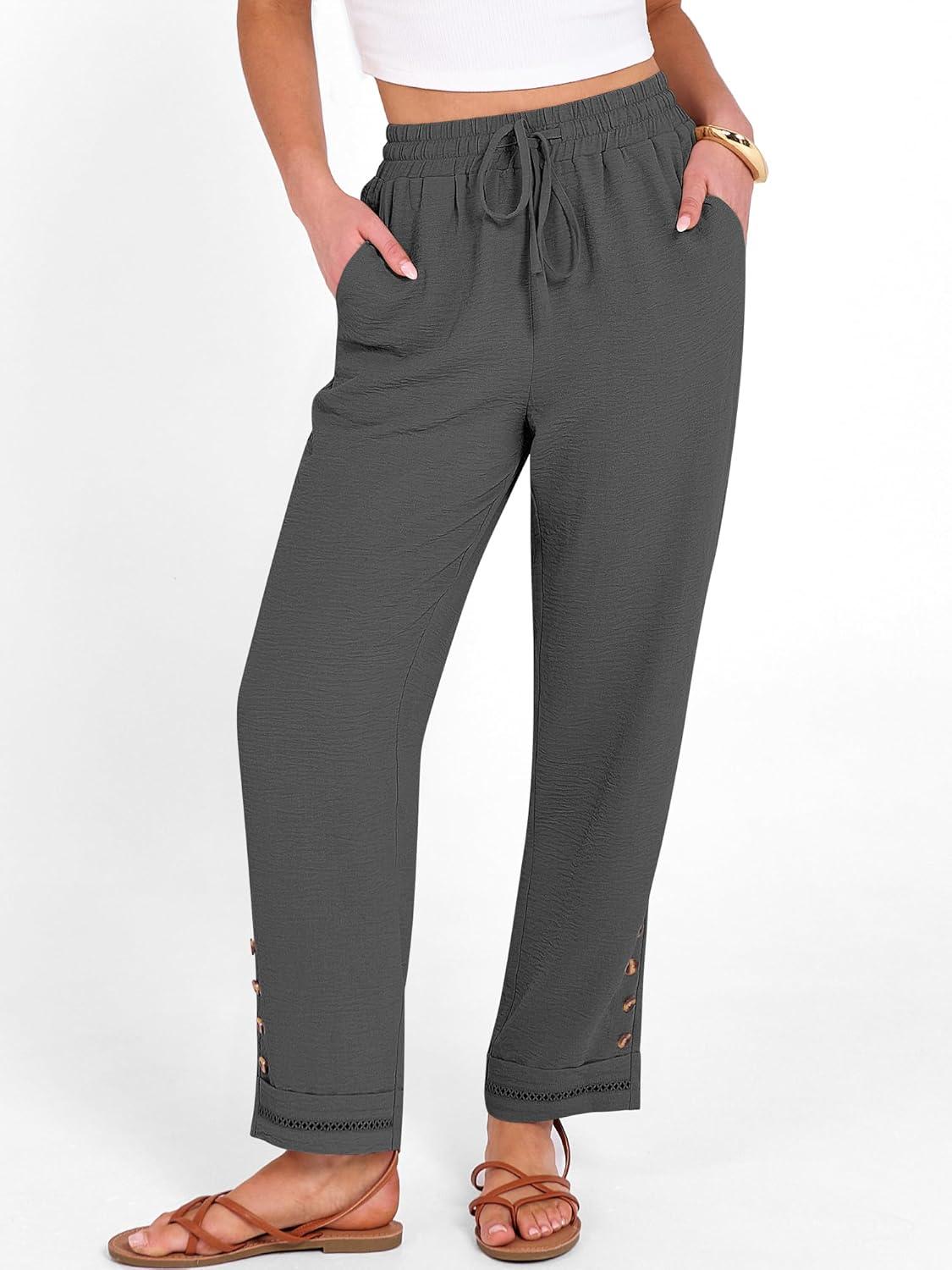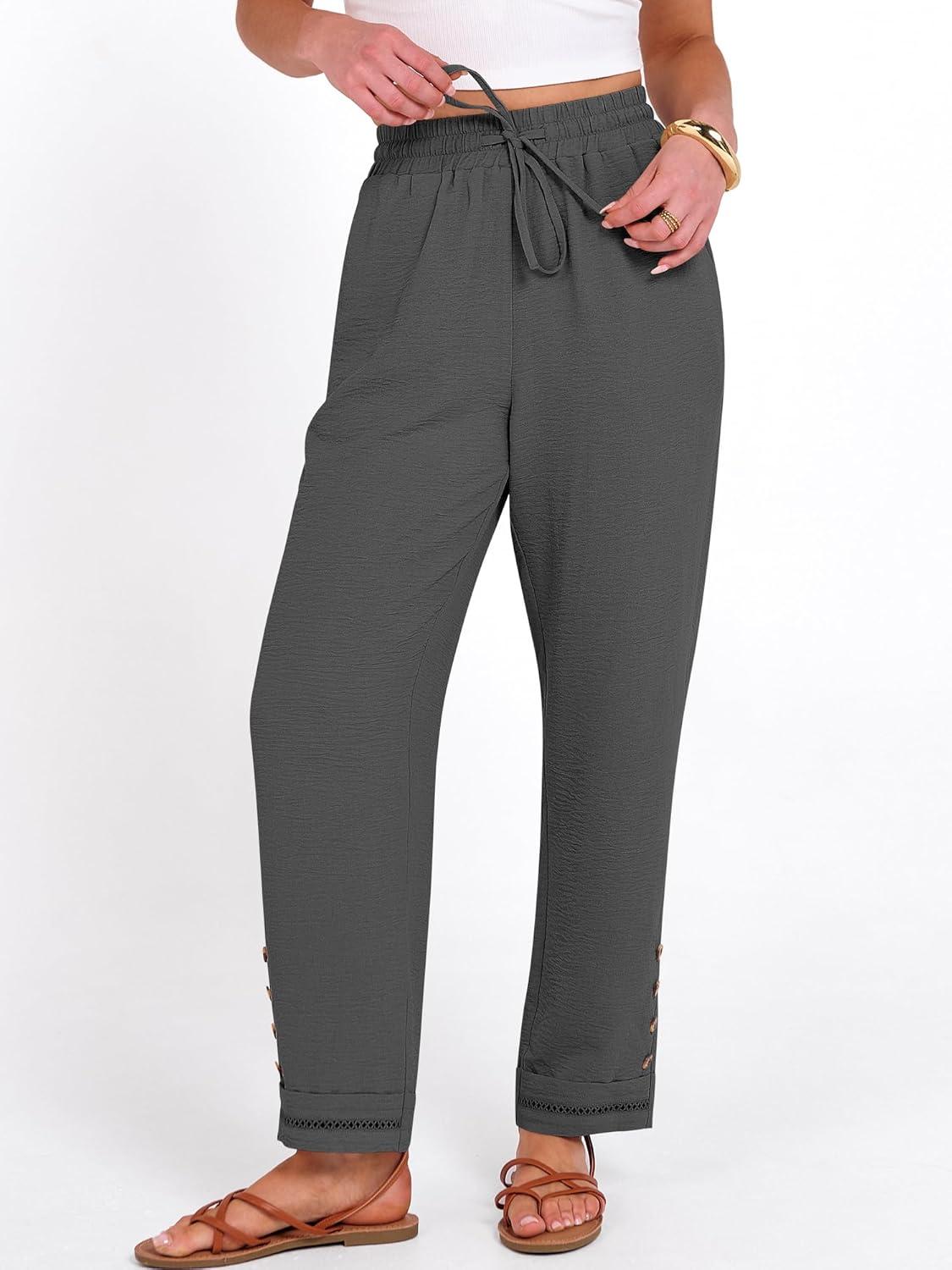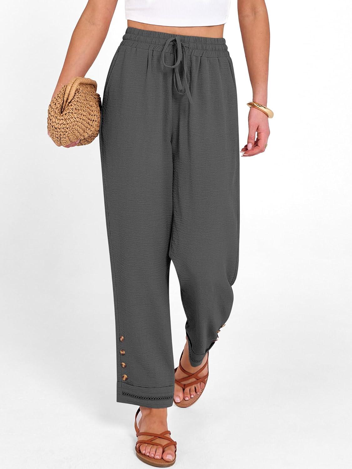 ANRABESS Womens Casual Cropped Pants Drawstring Elastic Waist 2026 Summer Loose Ankle Work Trousers with Pockets(Dark Gray)