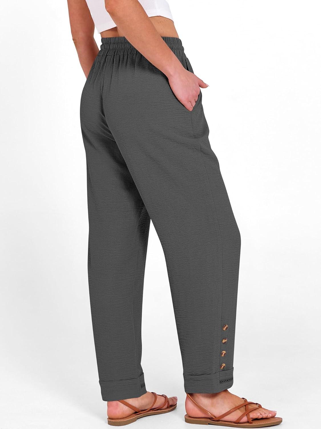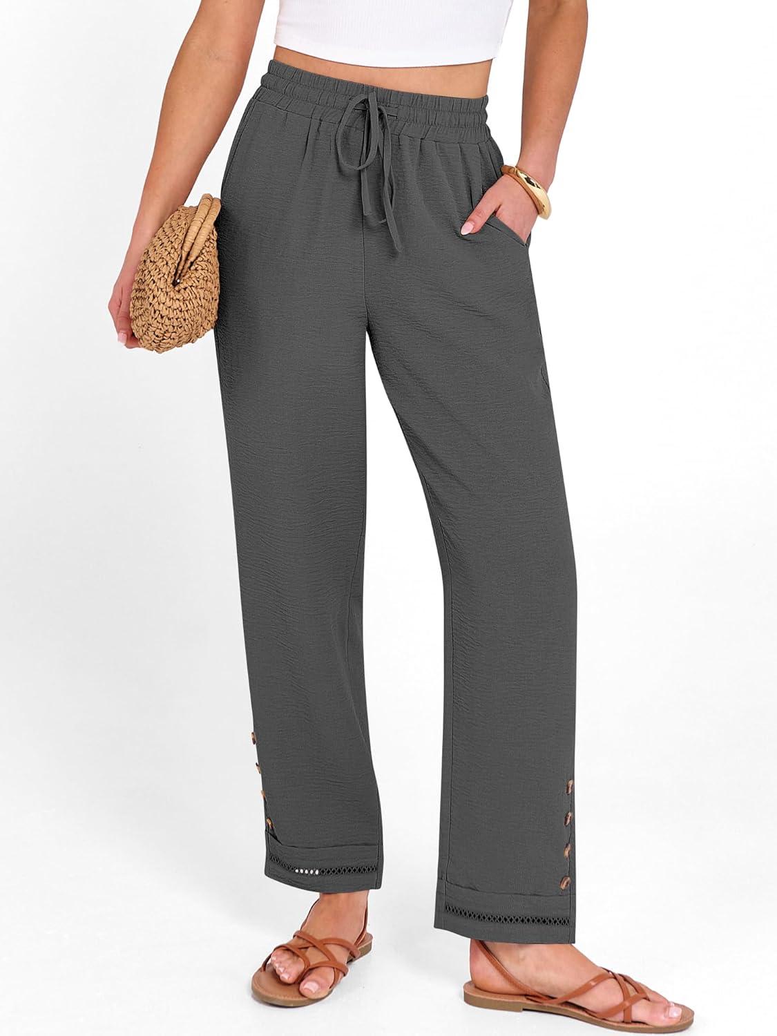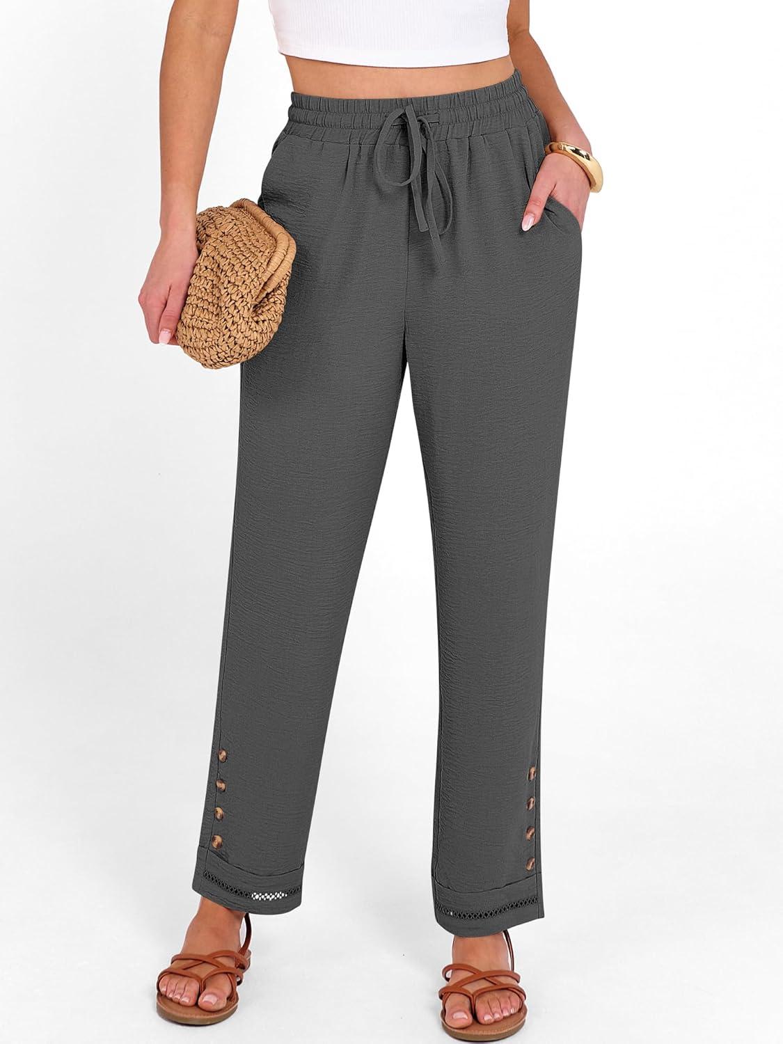 ANRABESS Womens Casual Cropped Pants Drawstring Elastic Waist 2026 Summer Loose Ankle Work Trousers with Pockets(Dark Gray)