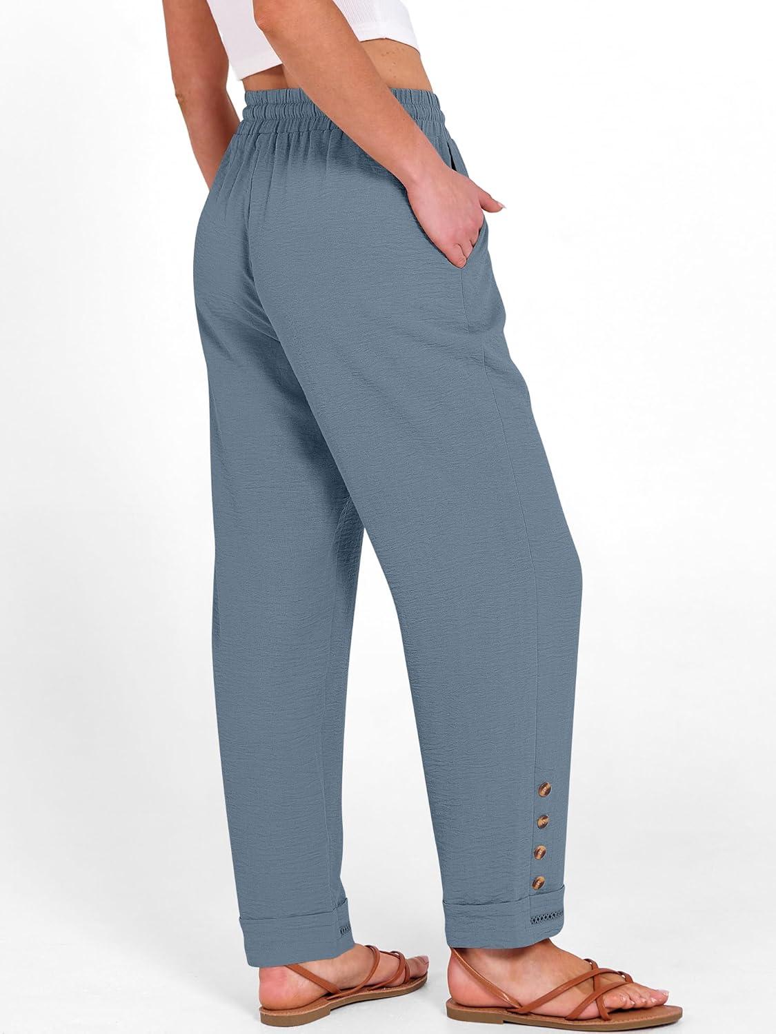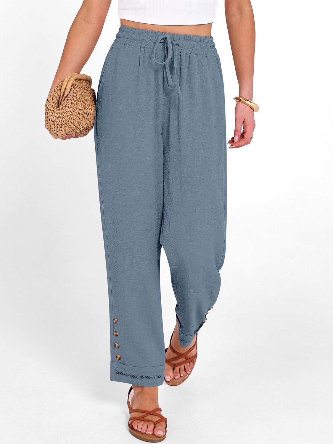 ANRABESS Womens Casual Cropped Pants Drawstring Elastic Waist 2026 Summer Loose Ankle Work Trousers with Pockets(Grey Blue)