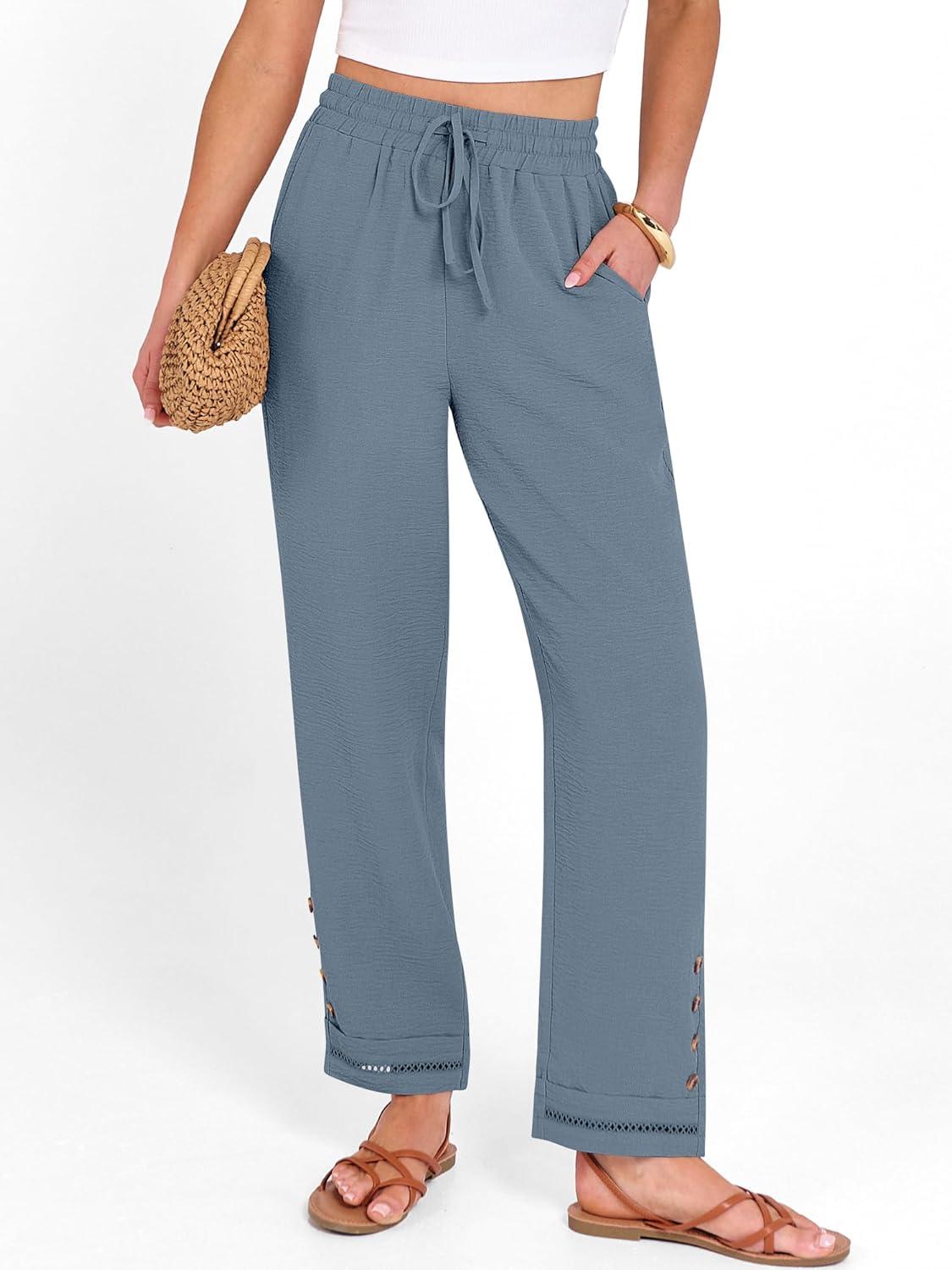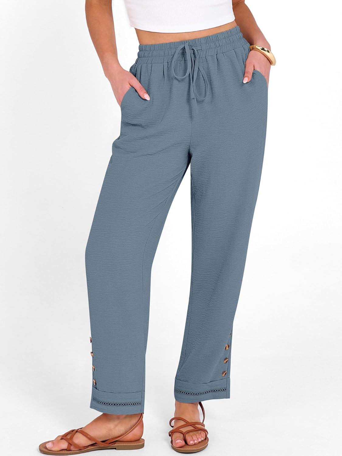 ANRABESS Womens Casual Cropped Pants Drawstring Elastic Waist 2026 Summer Loose Ankle Work Trousers with Pockets(Lake)