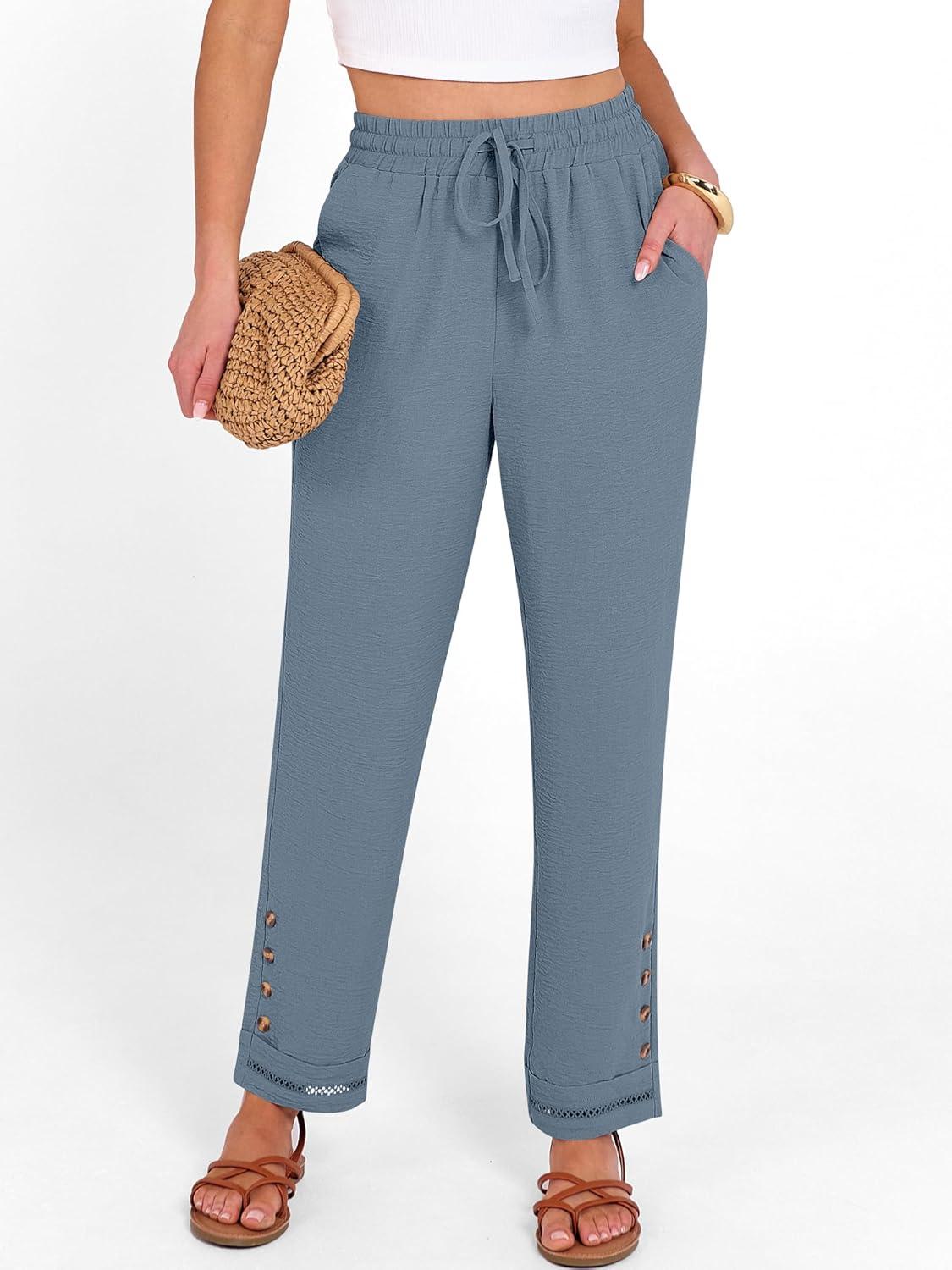 imageANRABESS Womens Casual Cropped Pants Drawstring Elastic Waist 2026 Summer Loose Ankle Work Trousers with PocketsLake