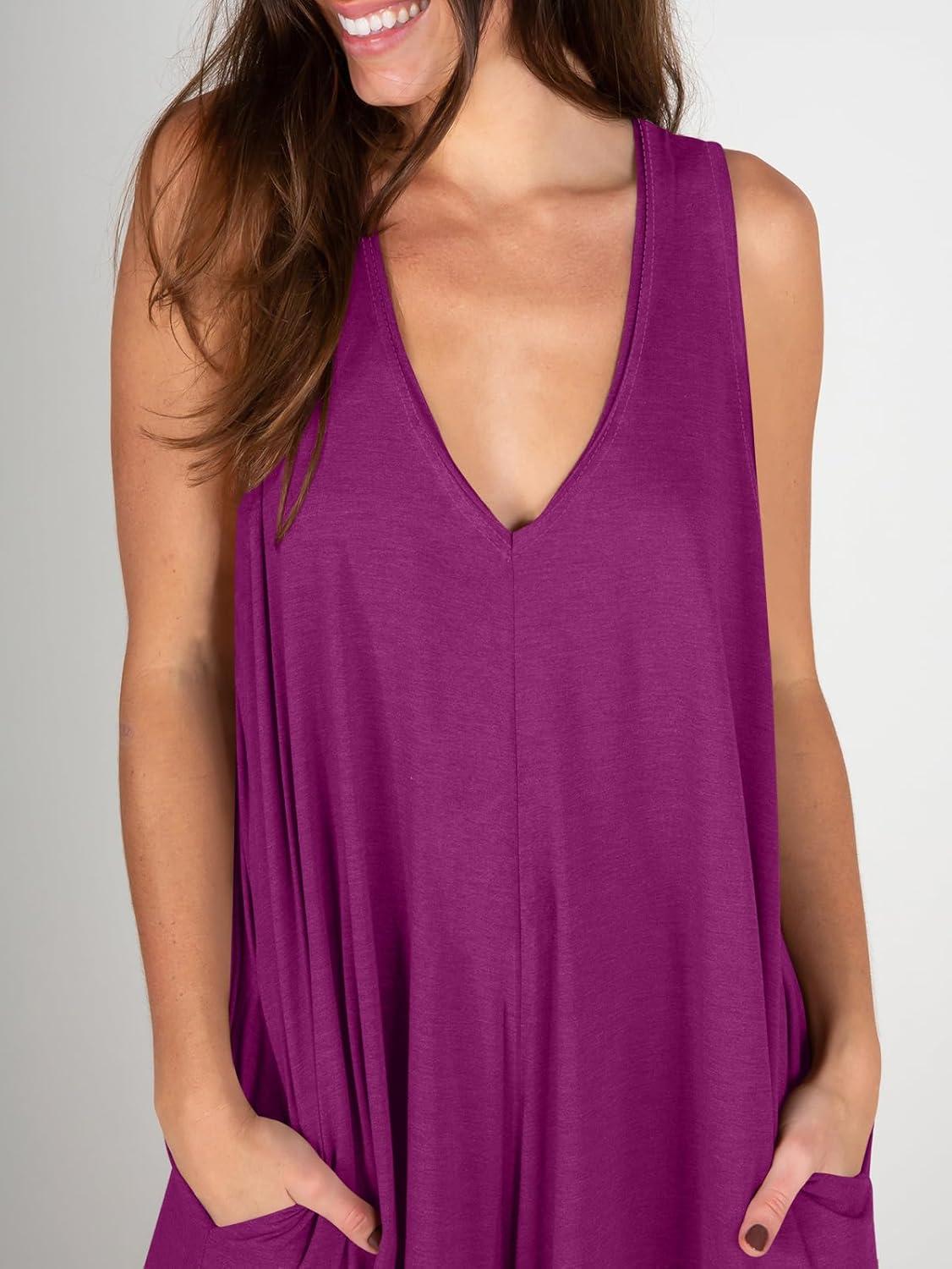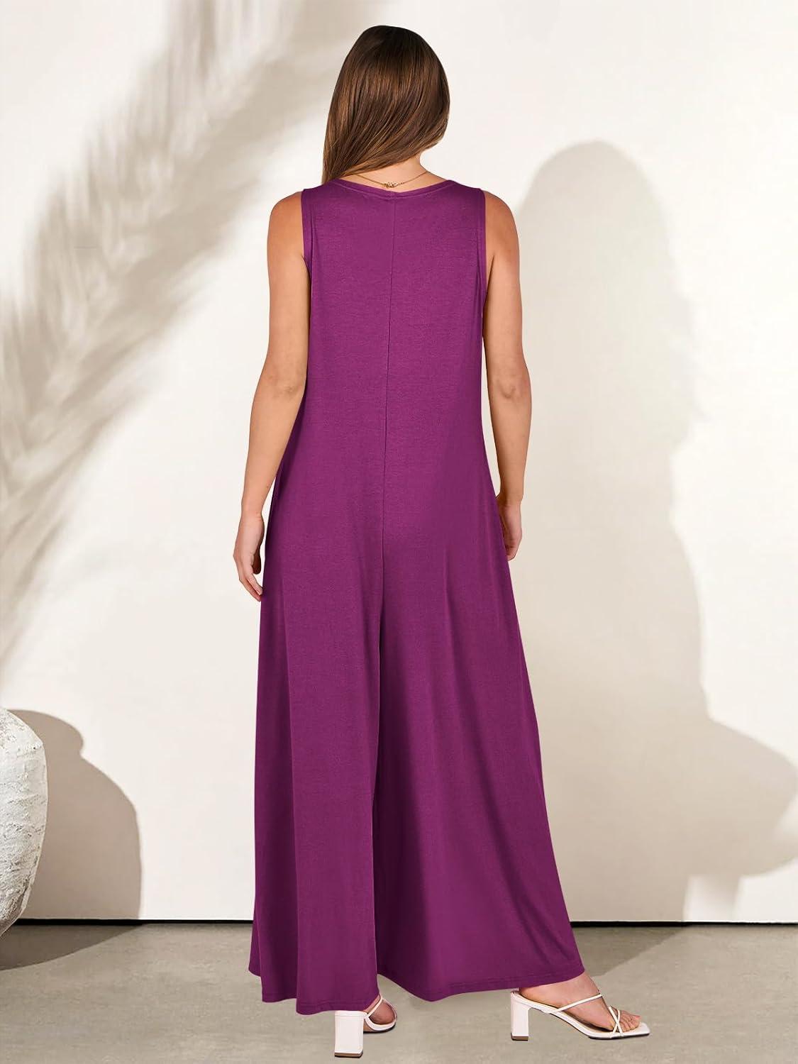 ANRABESS Women’s Casual Summer Loose Jumpsuits Sleeveless Tank V Neck Wide Leg Long Pant Rompers Baggy Jumper with Pockets(Dark Purple)