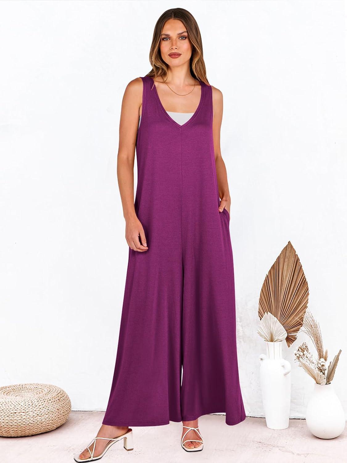 imageANRABESS Womens Casual Summer Loose Jumpsuits Sleeveless Tank V Neck Wide Leg Long Pant Rompers Baggy Jumper with PocketsDark Purple