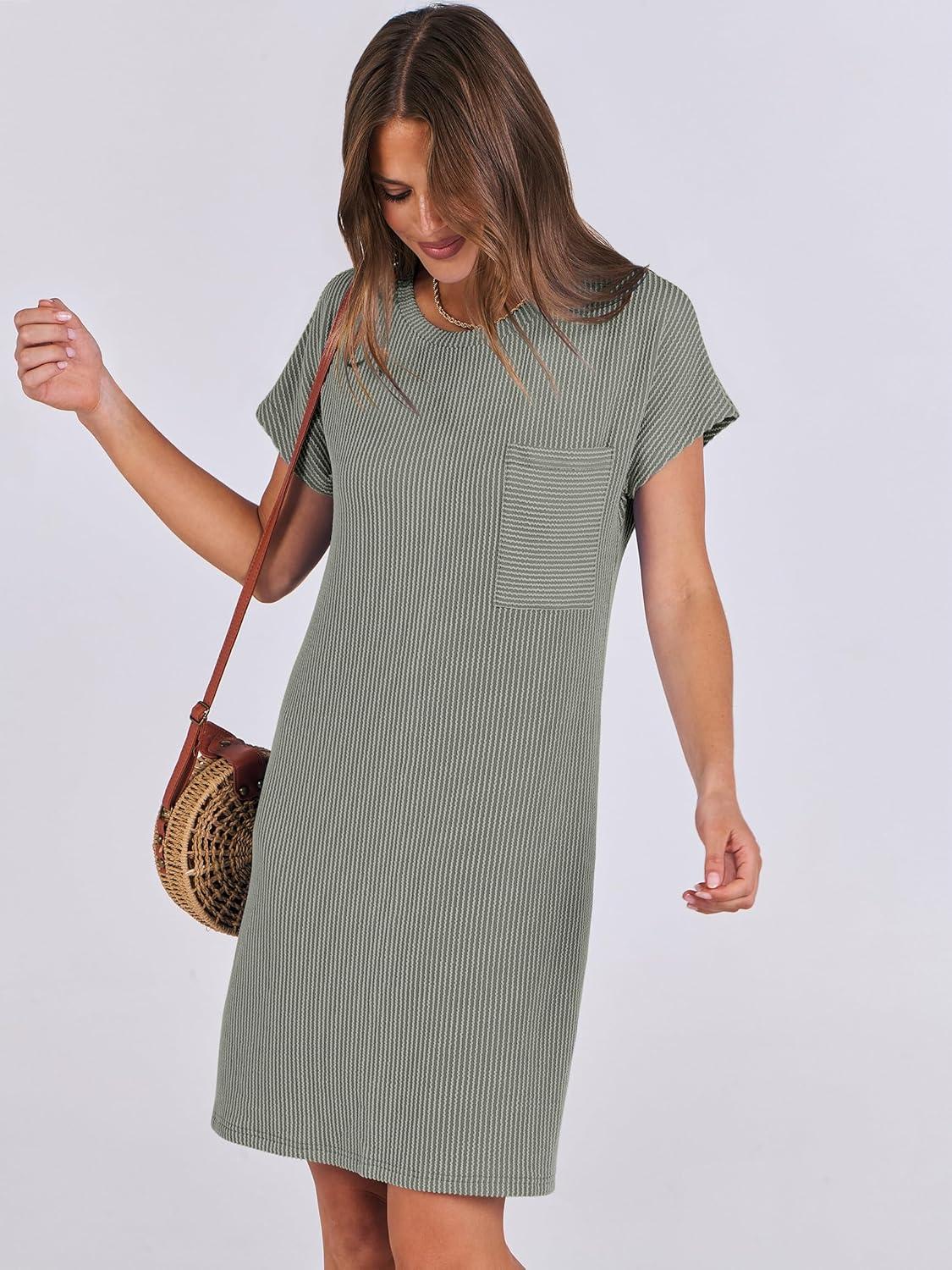 ANRABESS Womens Casual Summer Ribbed Knit Tunic Tshirt Mini Dresses 2026 Trendy Crewneck Short Sleeve Beach Loose Shift Dress(Gray Green)
