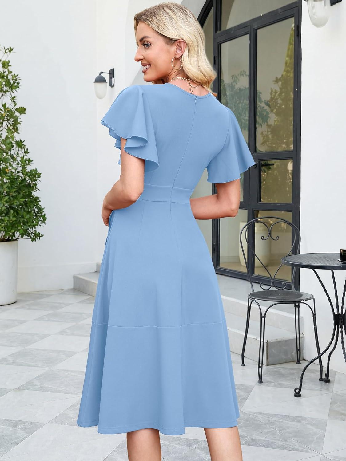 ANRABESS Womens Cocktail Dress Semi Formal Wedding Guest Wrap Midi Dresses Summer Western A Line High Low Ruffled Dress(Lake)