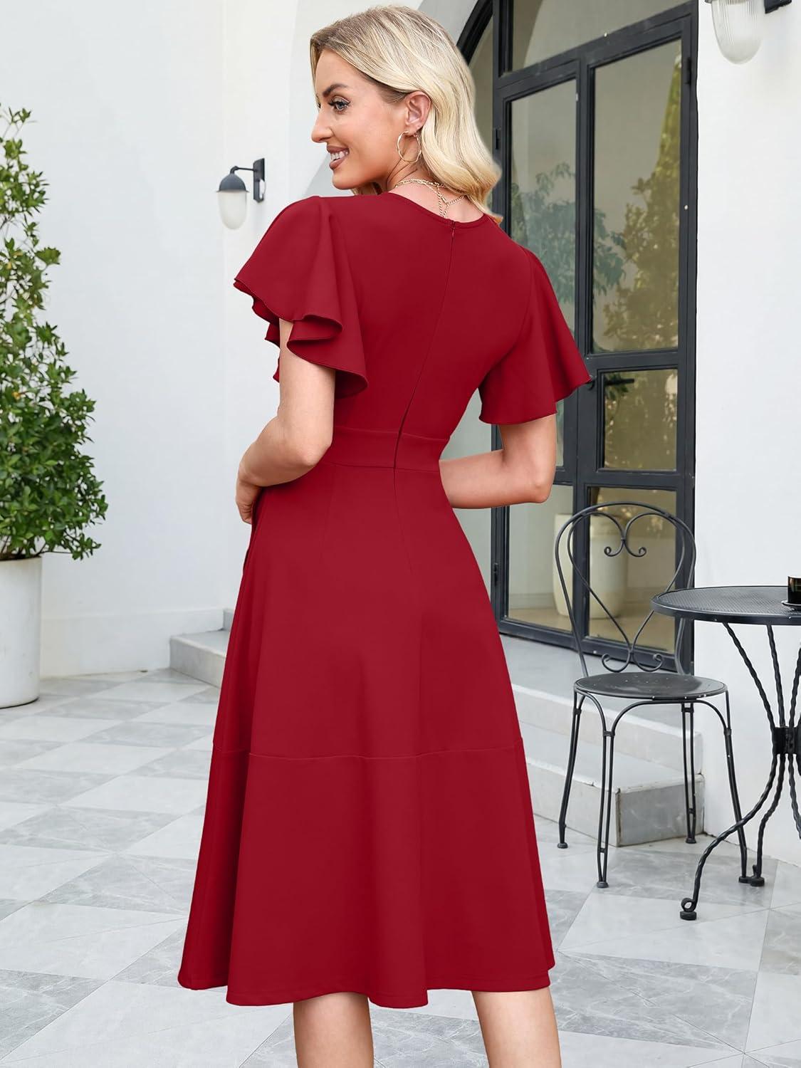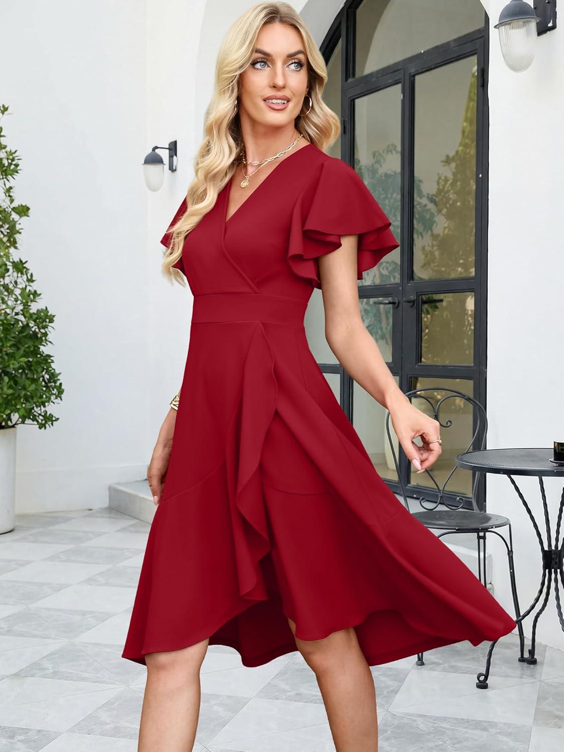 ANRABESS Womens Cocktail Dress Semi Formal Wedding Guest Wrap Midi Dresses Summer Western High Low Ruffled Valentines Dress(Red)